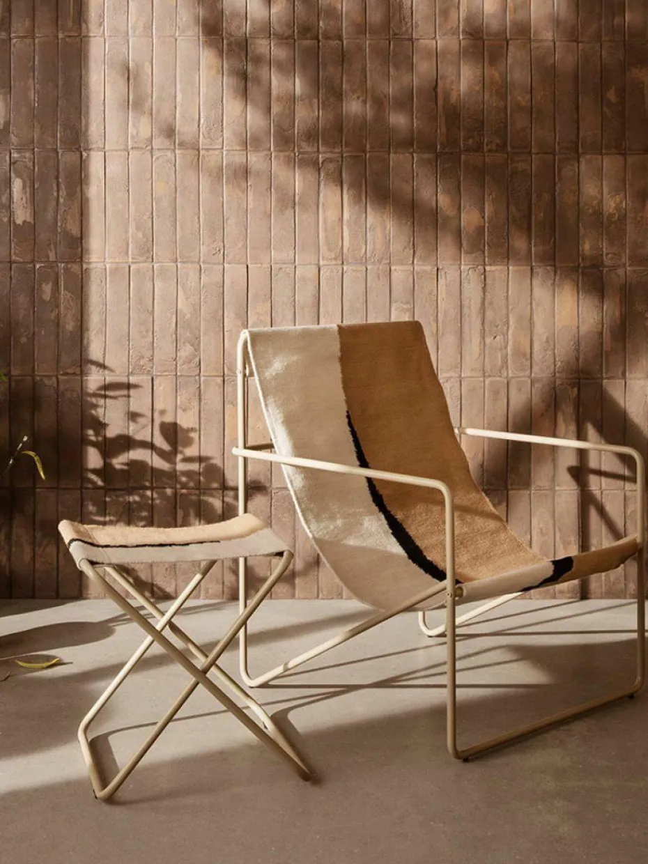 Der Desert Loungesessel ist ein modernistischer Stuhl mit einem anmutigen Profil. Er besteht aus einem röhrenförmigen Gestell mit einem austauschbaren gewebten Sitz, der vollständig aus recyceltem, zu PET-Garnen gesponnenen Kunststoff besteht.