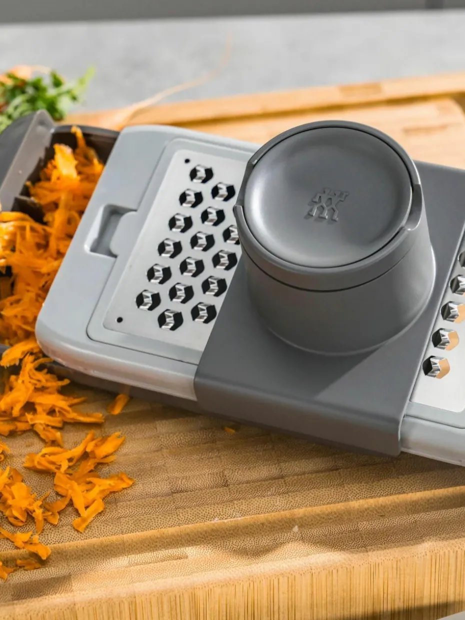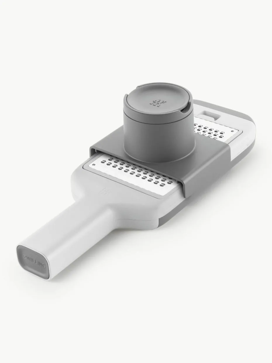 Die Multireibe aus der Serie Z-Cut ist Multischneider, Gemüsehobel und Handreibe in einem. Denn mit ihren vier austauschbaren Klingen (feine Reibe, mittlere Reibe, grobe Reibe und Schneide) ist sie multifunktional einsetzbar und verarbeitet Obst und Gemüse genauso problemlos wie Hartkäse, Nüsse oder Schokolade. Dabei ist diese Vielzweckreibe unglaublich effizient – dank der Z-Cut Reibtechnologie. Vorschneide- und Zwei-Wege-Funktion ermöglichen Lebensmittel besonders leicht und mit wenig Kraftaufwand in mundgerechte Portionen zu bringen. Auch kleine Lebensmittel und Reste kannst du ganz problemlos verarbeiten. Einfach in den abnehmbaren Lebensmittelaufsatz stecken und losreiben. Und dank dem integrierten Fingerschutz besteht dabei keine Verletzungsgefahr für deine Hände. Ebenfalls abnehmbar ist der Auffangbehälter, der mit seinem gummierten Boden gleichzeitig für einen rutschfesten Stand und damit eine bessere Kontrolle beim Reiben sorgt. „,“pdp_care_label“:“Spülmaschinengeeignet