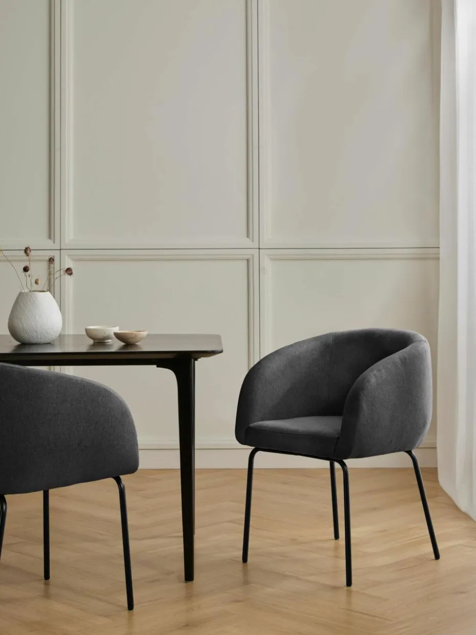 Erlebe den ALANI Armlehnstuhl – die perfekte Kombination aus Komfort und modernem Design. Mit seiner weichen, gepolsterten Sitzfläche und den geschwungenen Armlehnen bietet ALANI ein besonders angenehmes Sitzerlebnis. Die schlanken Metallbeine verleihen dem Stuhl eine elegante Leichtigkeit, während der neutrale Stoffbezug ihn vielseitig einsetzbar macht. Egal ob im Esszimmer, Arbeitszimmer oder Wohnbereich – der ALANI Stuhl fügt sich nahtlos in jedes Ambiente ein und überzeugt durch seine zeitlose Ästhetik und Funktionalität.“,“pdp_care_label“:“Der Bezug ist nicht abnehmbar.