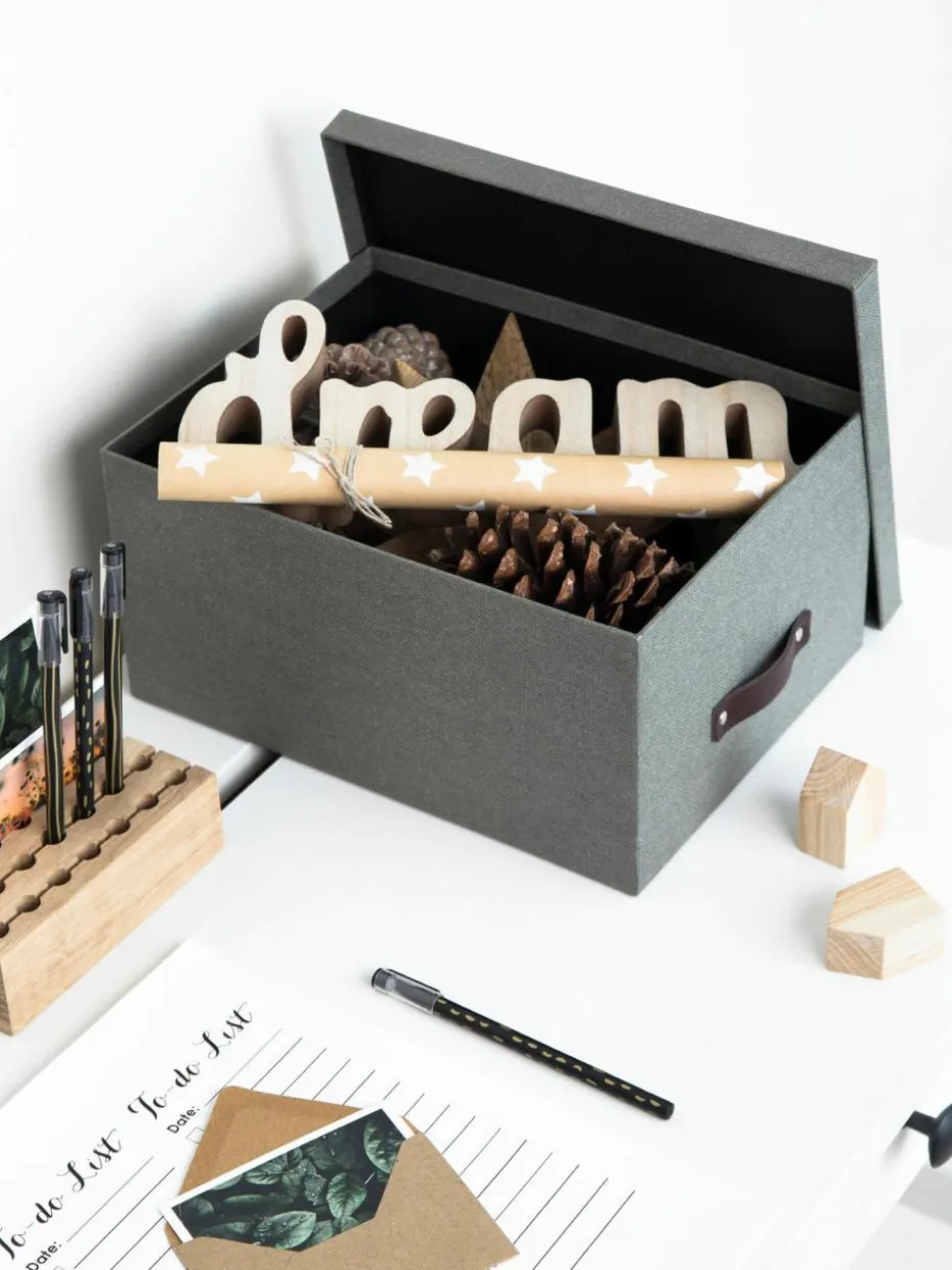 Diese vielseitige Aufbewahrungsbox hilft Dir, Ordnung zu halten und Platz zu sparen. Dank ihrer stabilen Konstruktion, die ein Stapeln ermöglicht, und ihrer vielseitigen Größe ist sie perfekt für Kabel, Spiele, Filme und anderen Schnickschnack. Die Gustav Aufbewahrungsbox verwandelt jeden freien Platz in einen cleveren Stauraum. Das elegante Design passt in jedes Zuhause und lässt Dich Dinge verstecken, die Du nicht sehen kannst! Diese Box ist so konzipiert, dass sie dem täglichen Gebrauch standhält, und wird zu einem funktionalen und dekorativen Element in jedem Raum, ob Wohnzimmer, Schlafzimmer, Büro oder Kinderzimmer.