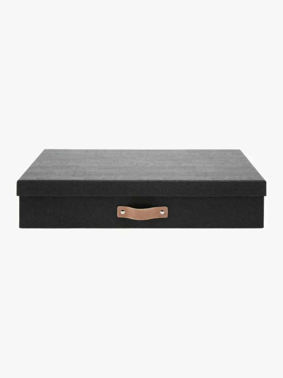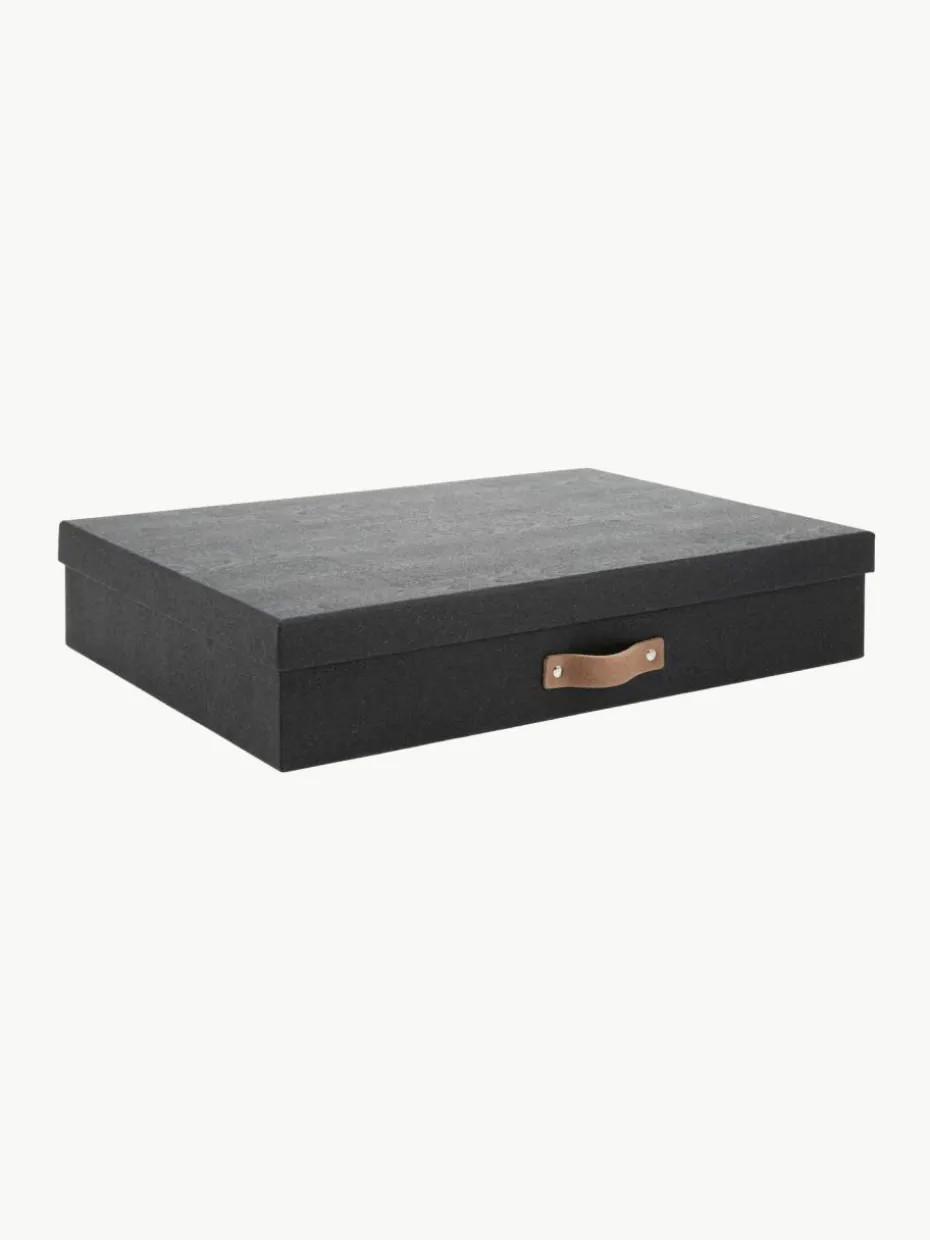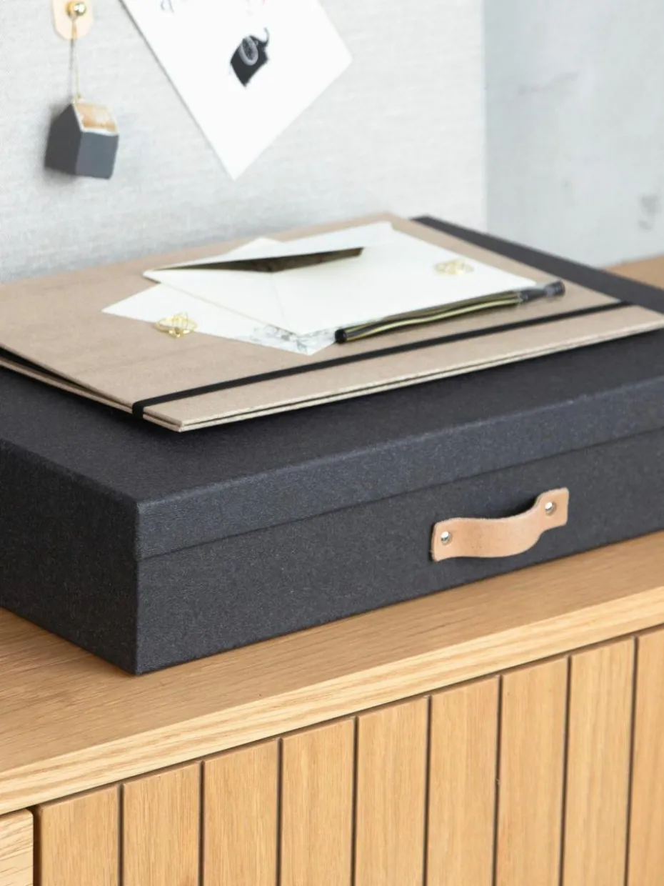 Die Aufbewahrungsbox mit abnehmbaren Deckel ist für Dokumente bis DIN A3-Format geeignet.