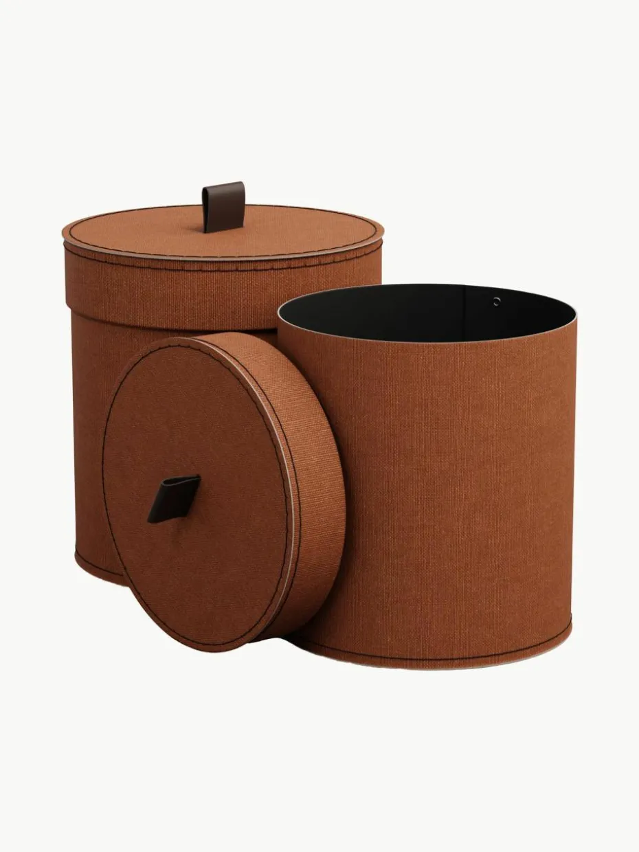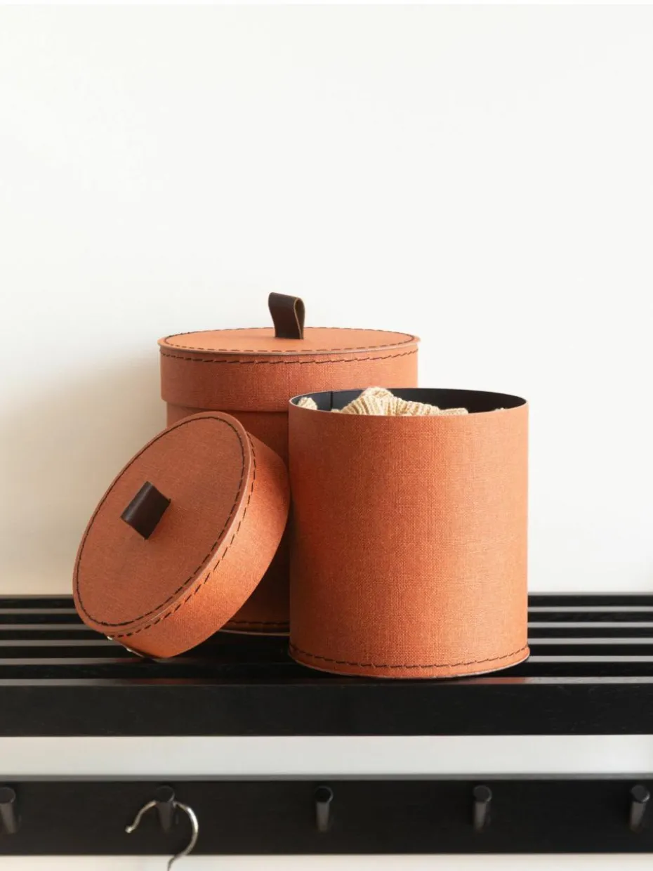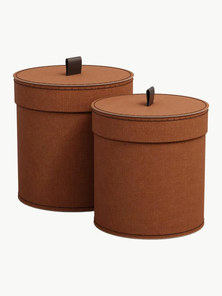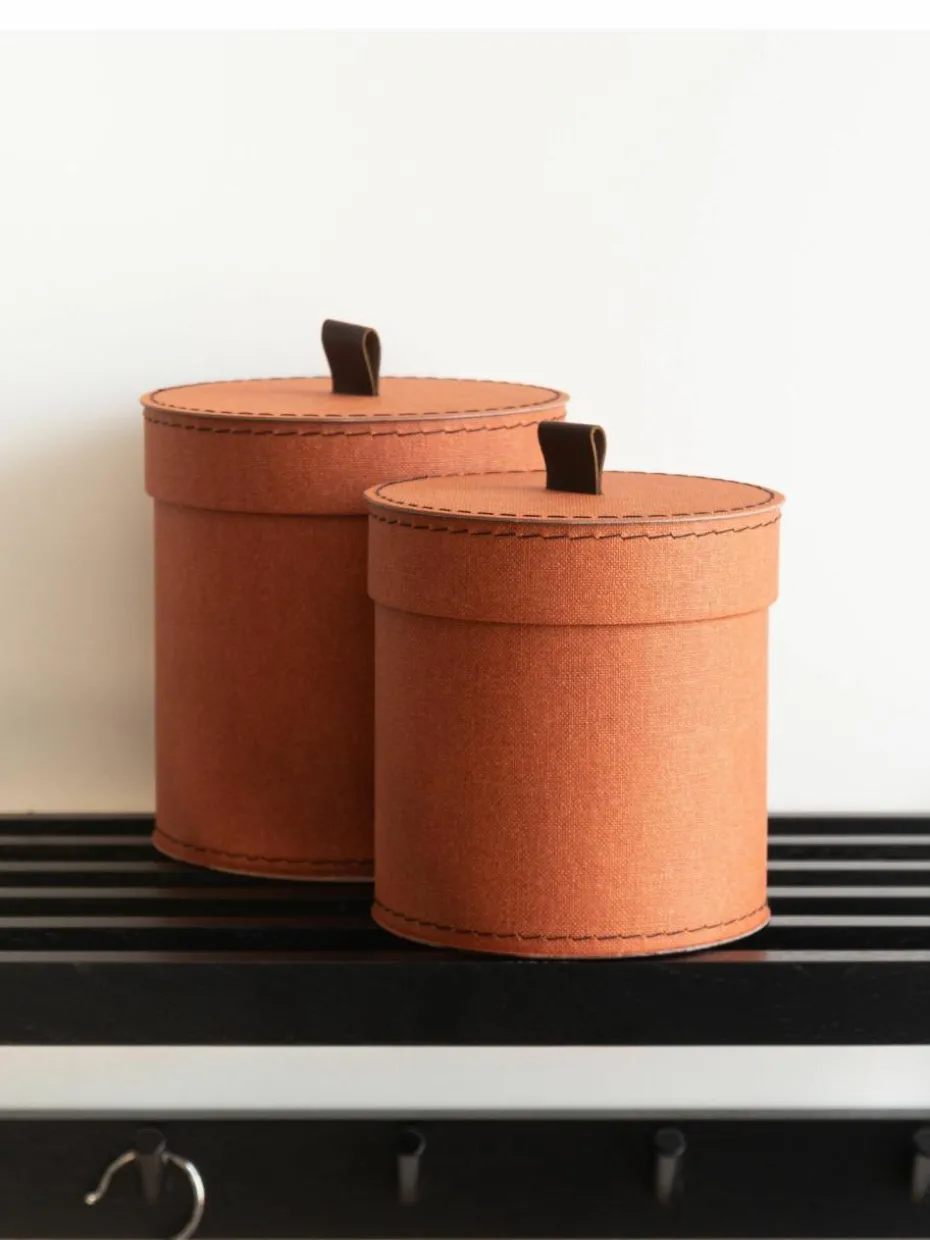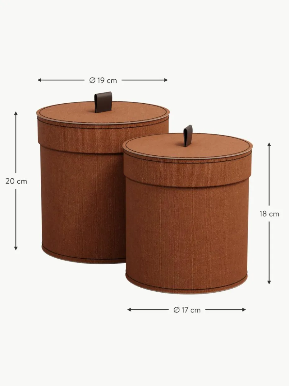 Ein hübsches Design mit Nieten und roh geschnittenen Kanten sowie Ledergriffen an den Deckeln macht diese Boxen zu einem dekorativen Element in jedem Zuhause und ermöglicht es Dir, Dinge außer Sicht zu verstauen. Die kompakte Größe hilft Dir, kleinere Gegenstände an ihrem Platz zu halten und ein organisiertes, ordentliches Zuhause zu bewahren.