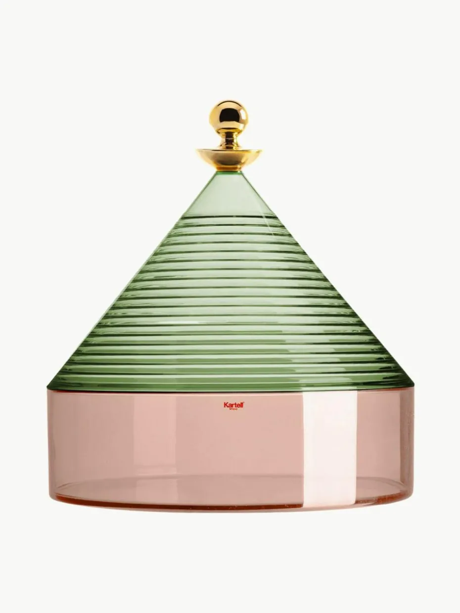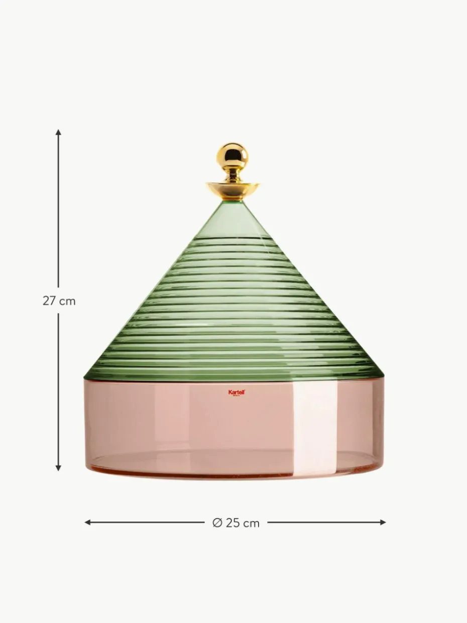 Trullo ist eine Aufbewahrungsdose mit konischem Deckel, der von der Architektur der Häuser in Alberobello inspiriert wurde. Fabio Novembre setzt den kreativen Weg fort, der von der Architektur seiner Heimat Apulien beeinflusst wurde.