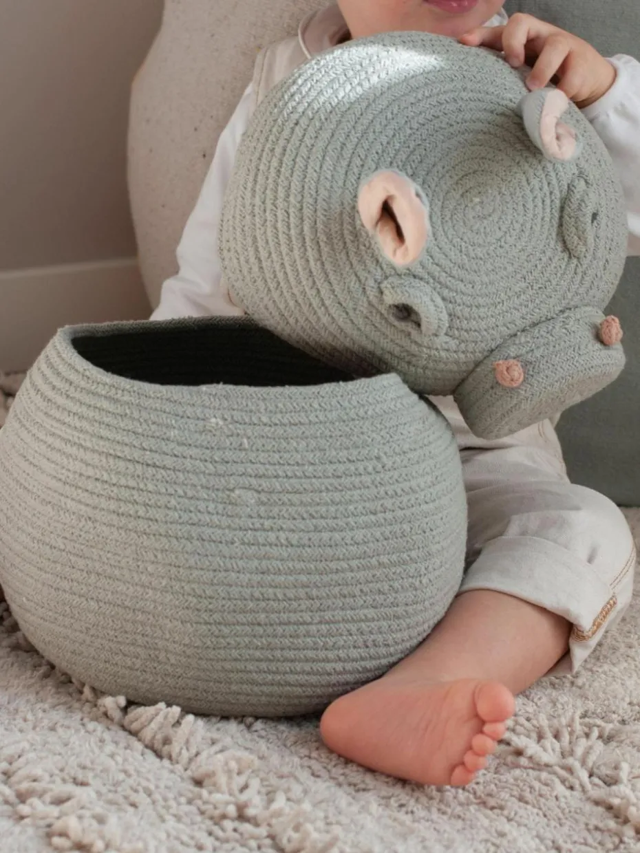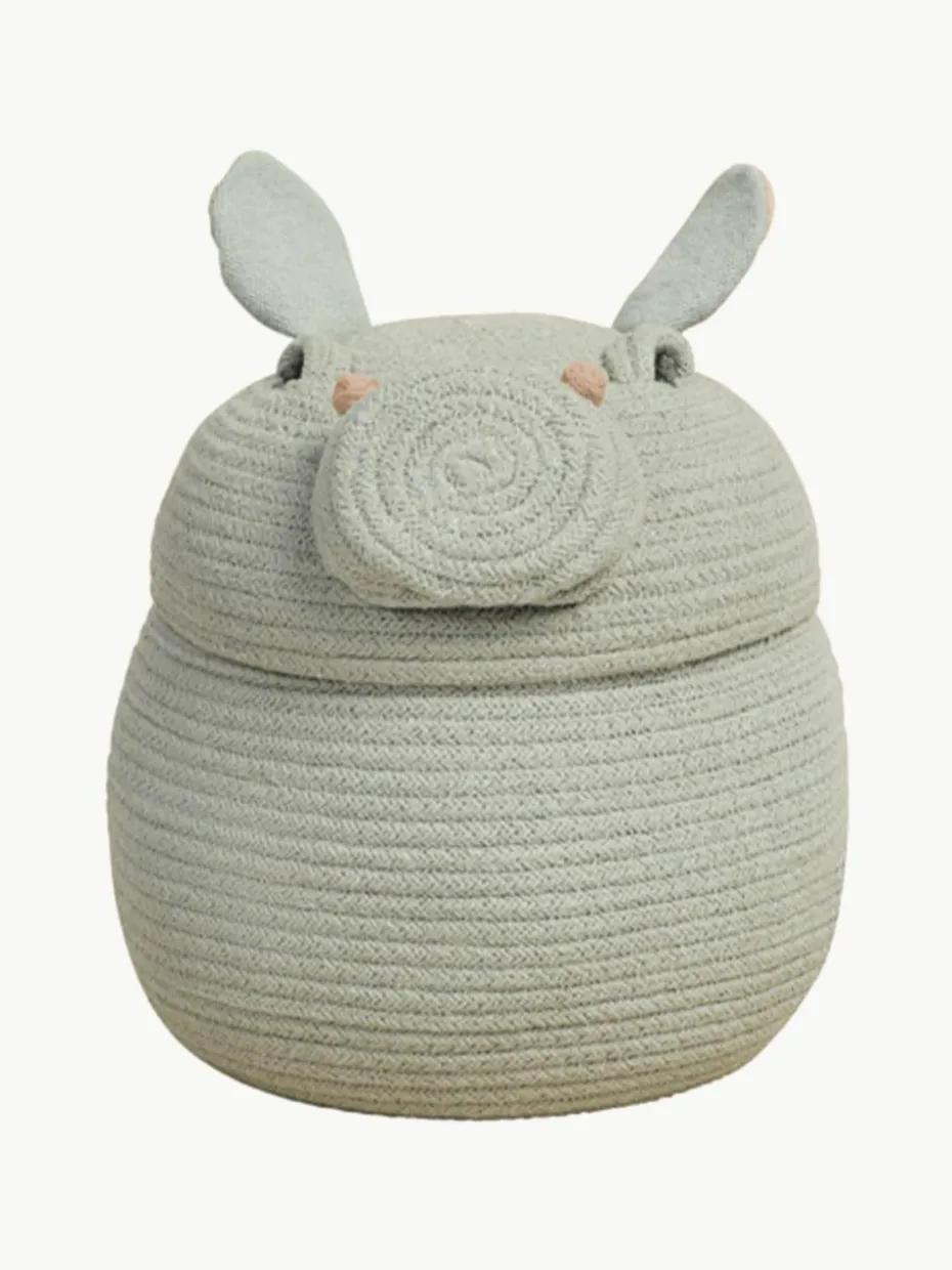 Aufbewahrungskorb Henry the Hippo mit Deckel, handgefertigt