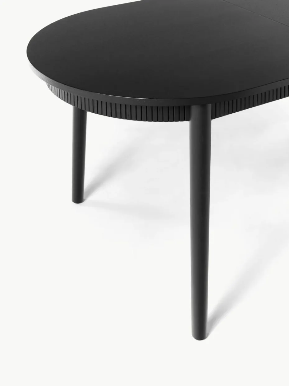 Dank des integrierten Mittelauszugs kann der Tisch problemlos verlängert werden. Hierbei werden die beiden äußeren Platten auseinander geschoben und die dritte, mittlere Platte, die sich darunter befindet, automatisch nach oben befördert.