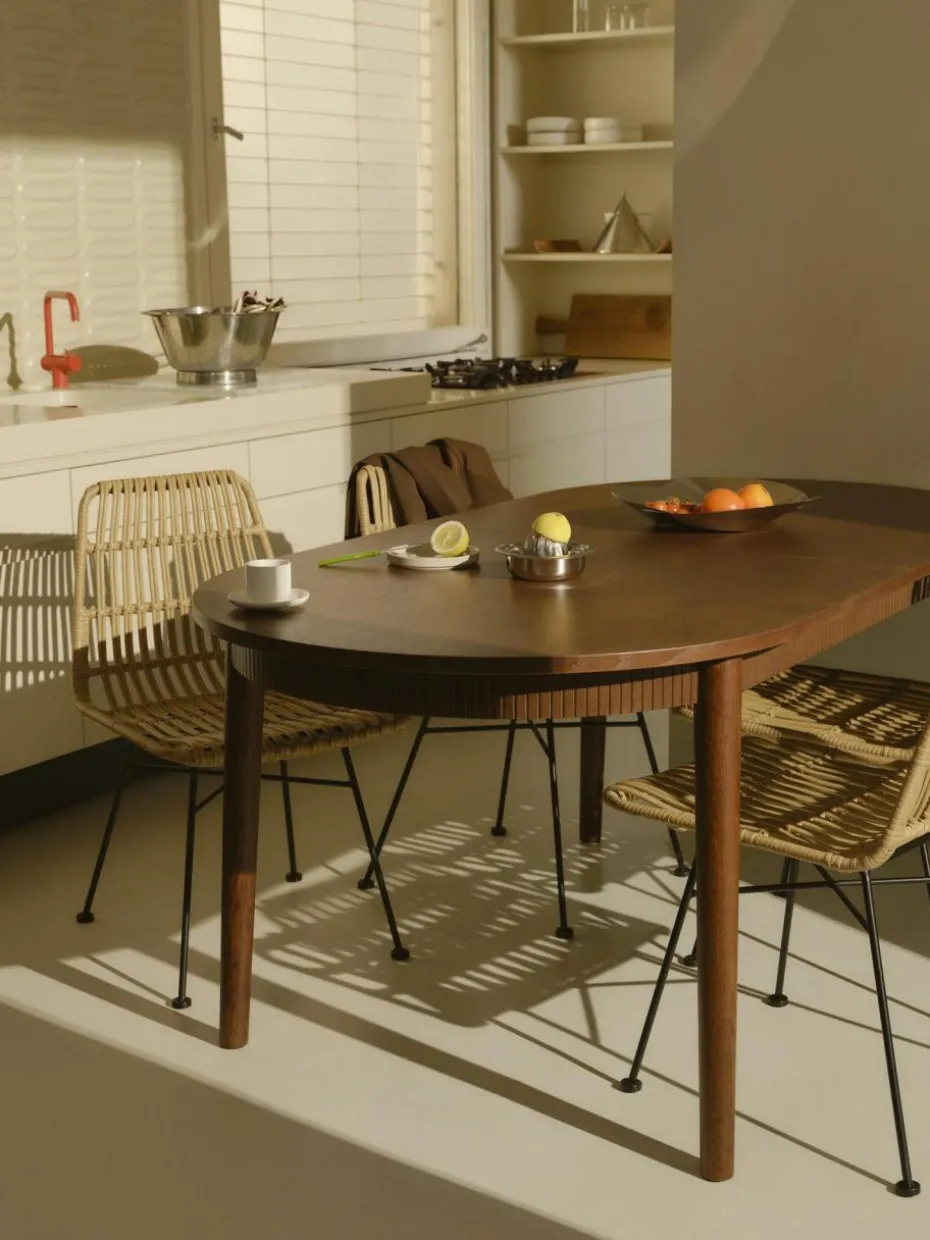 Dieser Tisch eignet sich für bis zu sechs Personen ohne Verlängerung und für acht Personen mit Verlängerung.