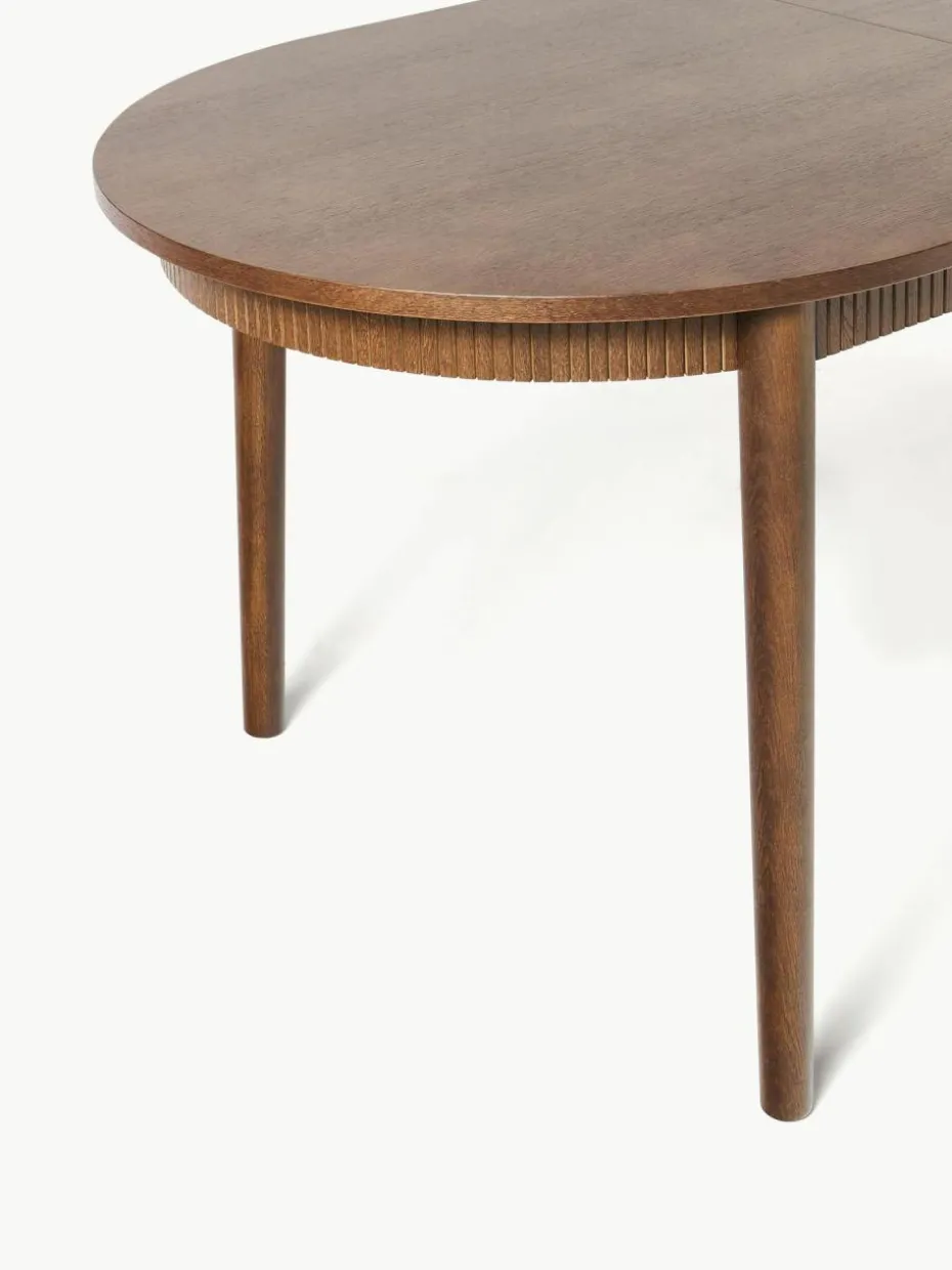 Dank des integrierten Mittelauszugs kann der Tisch problemlos verlängert werden. Hierbei werden die beiden äußeren Platten auseinander geschoben und die dritte, mittlere Platte, die sich darunter befindet, automatisch nach oben befördert.