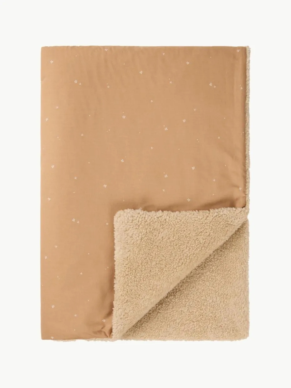 Entdecke den ultimativen Komfort für Dein Kind mit der vielseitigen Decke, die jederzeit für Wärme und Weichheit sorgt. Die eine Seite aus bedruckter Bio-Baumwolle garantiert ein natürliches und beruhigendes Gefühl, die andere Seite aus extraweichem Kunstfell ist ideal für entspannende Momente. Verleihe dem Zimmer Deines Kindes einen Hauch von Stil mit der Decke, die sich perfekt zum Lesen oder Kuscheln eignet. Inspiriert von den schönen Momenten des Familienalltags, vereinfacht die Kollektion Stories das hektische Leben der Eltern.