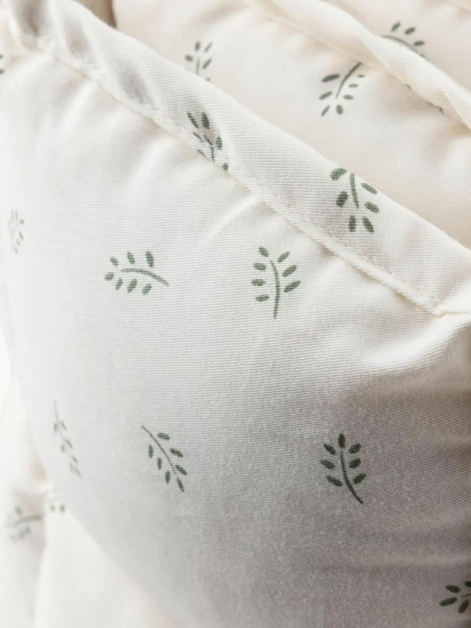 Diese KAPOK Bettumrandung passt ideal in das Junior Grow Bett, das Baby & Junior Bett und in jedes Kinderbett mit einer Größe von 60 x 120 cm. Das Bettnestchen lässt sich auch an ein kleineres Bett anpassen, indem man es z. B. am Fußende überlappend legt.“,“pdp_care_label“:“Maschinenwäsche bei 40 °C