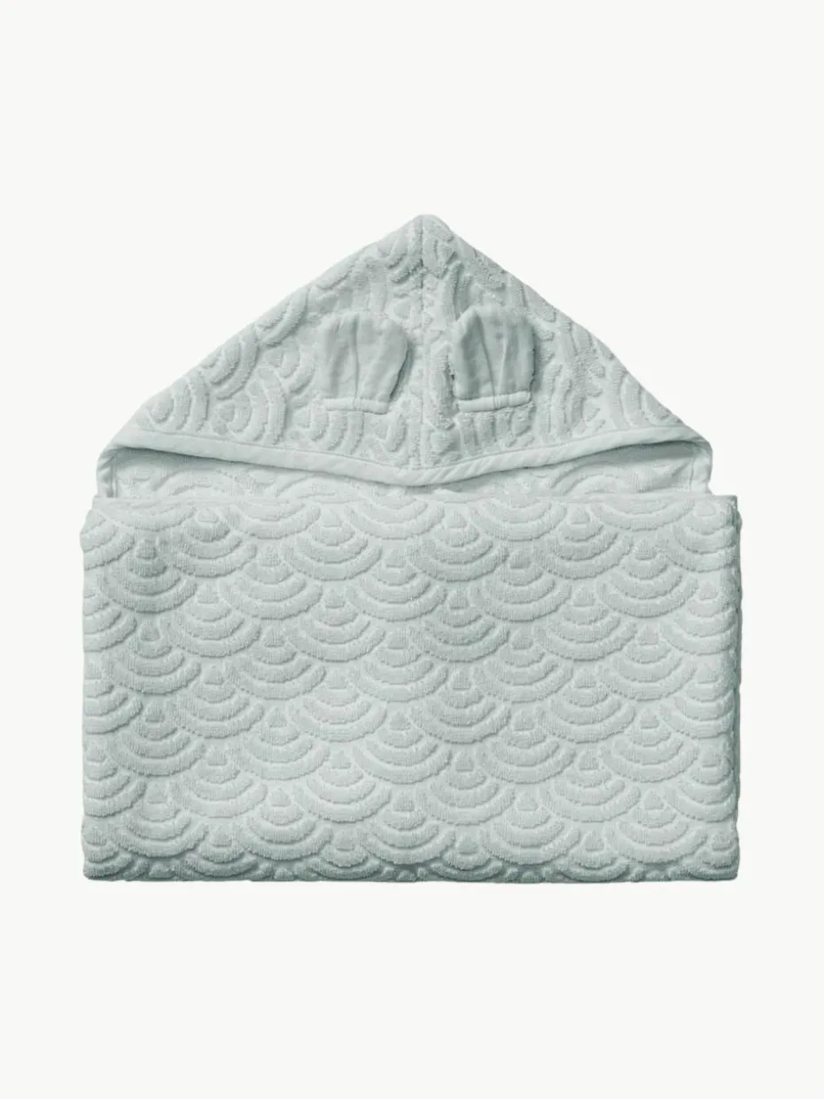 Kuschelig weiches und dickes Junior-Handtuch aus Bio-Baumwolle, gewebt mit dem kultigen Cam Cam Wellenmuster. Das Handtuch hat eine kleine Kapuze mit niedlichen Bärenohren und ist perfekt zum Einkuscheln nach einem warmen Bad. Das luftige Wellenmuster sorgt dafür, dass das Handtuch schnell trocknet.