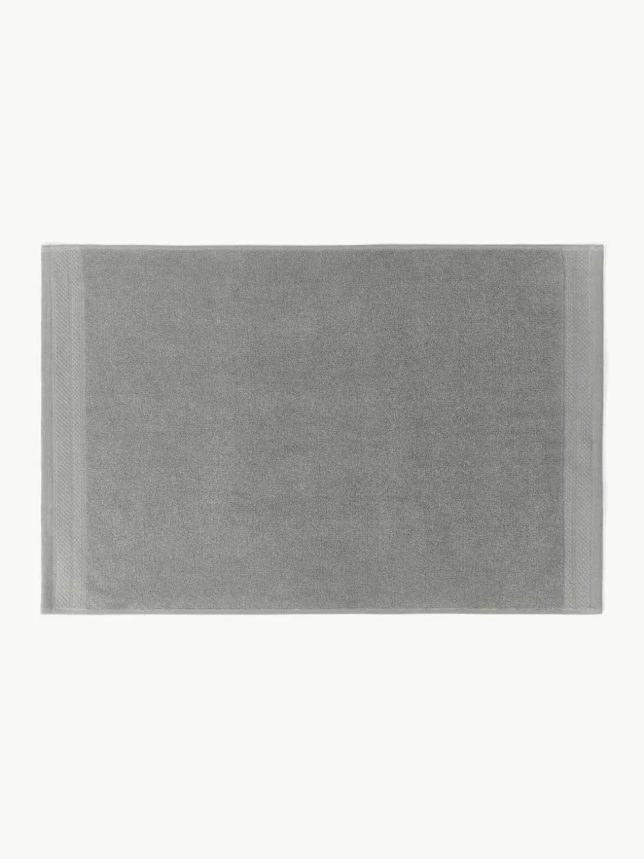 Die Badematte mit Zierbordüre und Antirutschbeschichtung auf der Unterseite wurde aus GOTS-zertifizierter Bio-Baumwolle gefertigt.