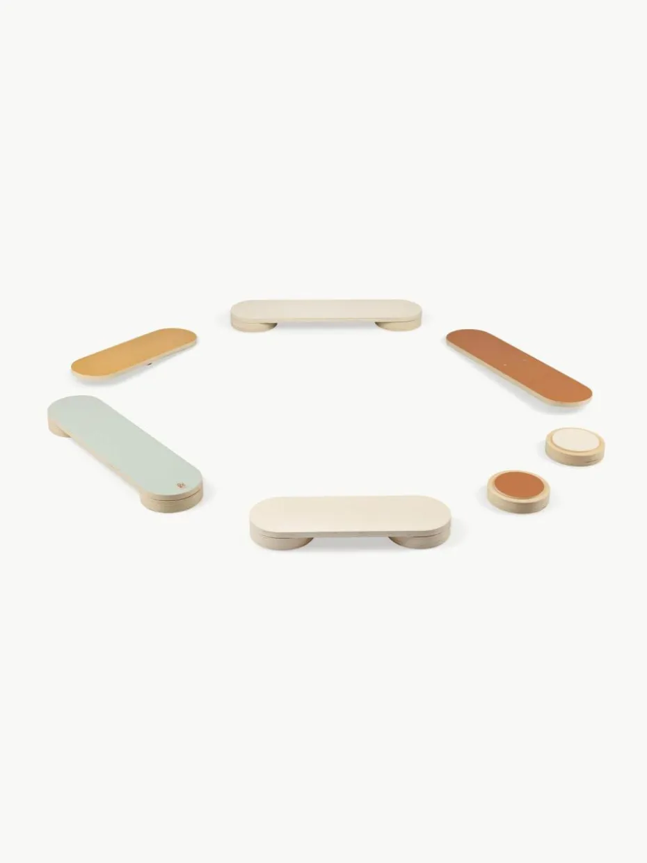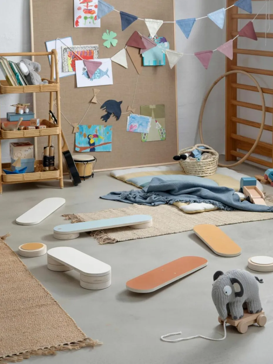 Kinder können stundenlang damit verbringen, die verschiedenen Teile zusammenzusetzen, um spannende Balance- oder Hindernisparcours zu schaffen. Die Balanciersteine können einzeln auf den Boden gelegt oder unter den Balancierbrettern gestapelt werden, um dem Parcours Höhe zu verleihen. Zwei der Balancierbretter sind kippbar, was das Spiel noch anspruchsvoller macht. Wenn er nicht benutzt wird, kann der Parcours gestapelt werden, um den Platzbedarf zu minimieren.