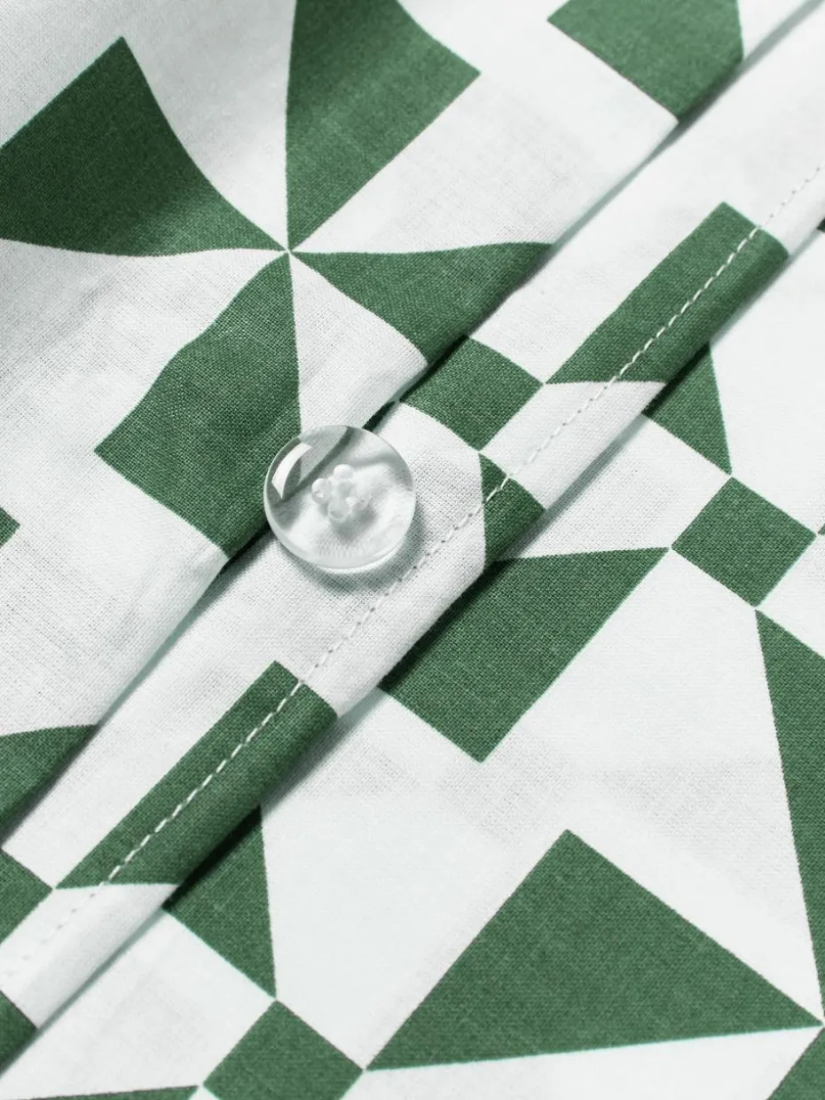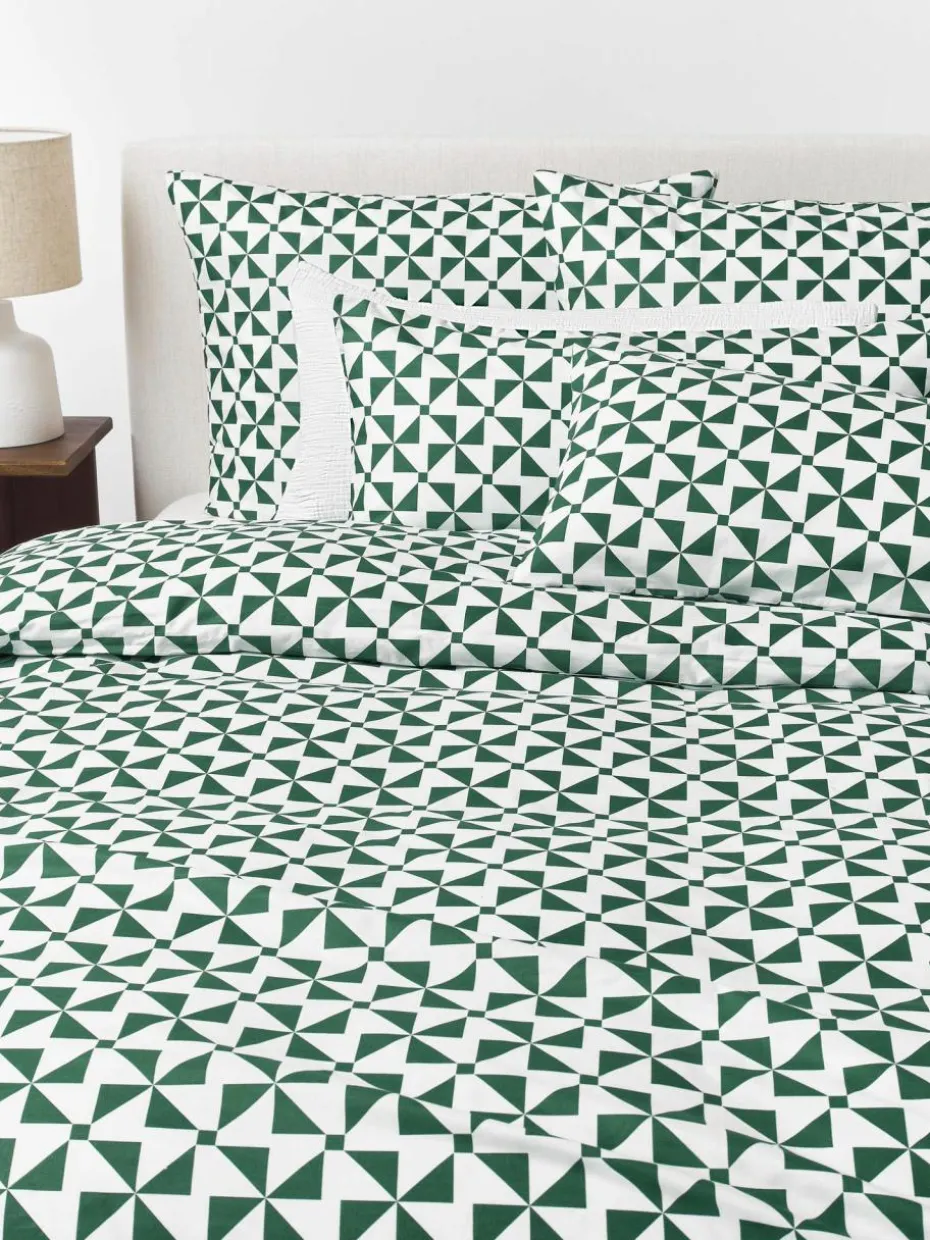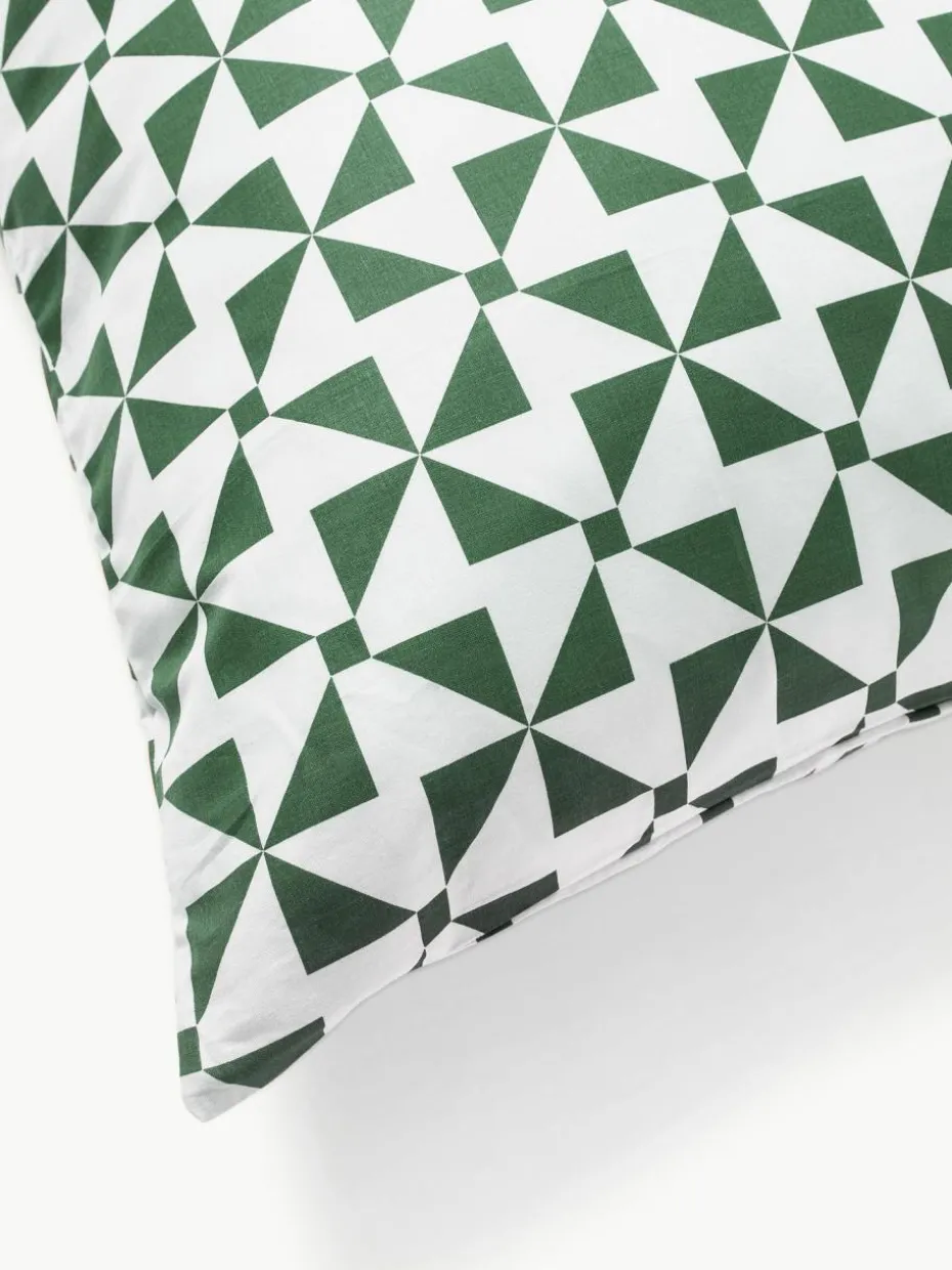 Der Baumwoll-Betdeckenbezug mit grafischem Muster verfügt über einen Knopfverschluss und wurde in Portugal gefertigt.