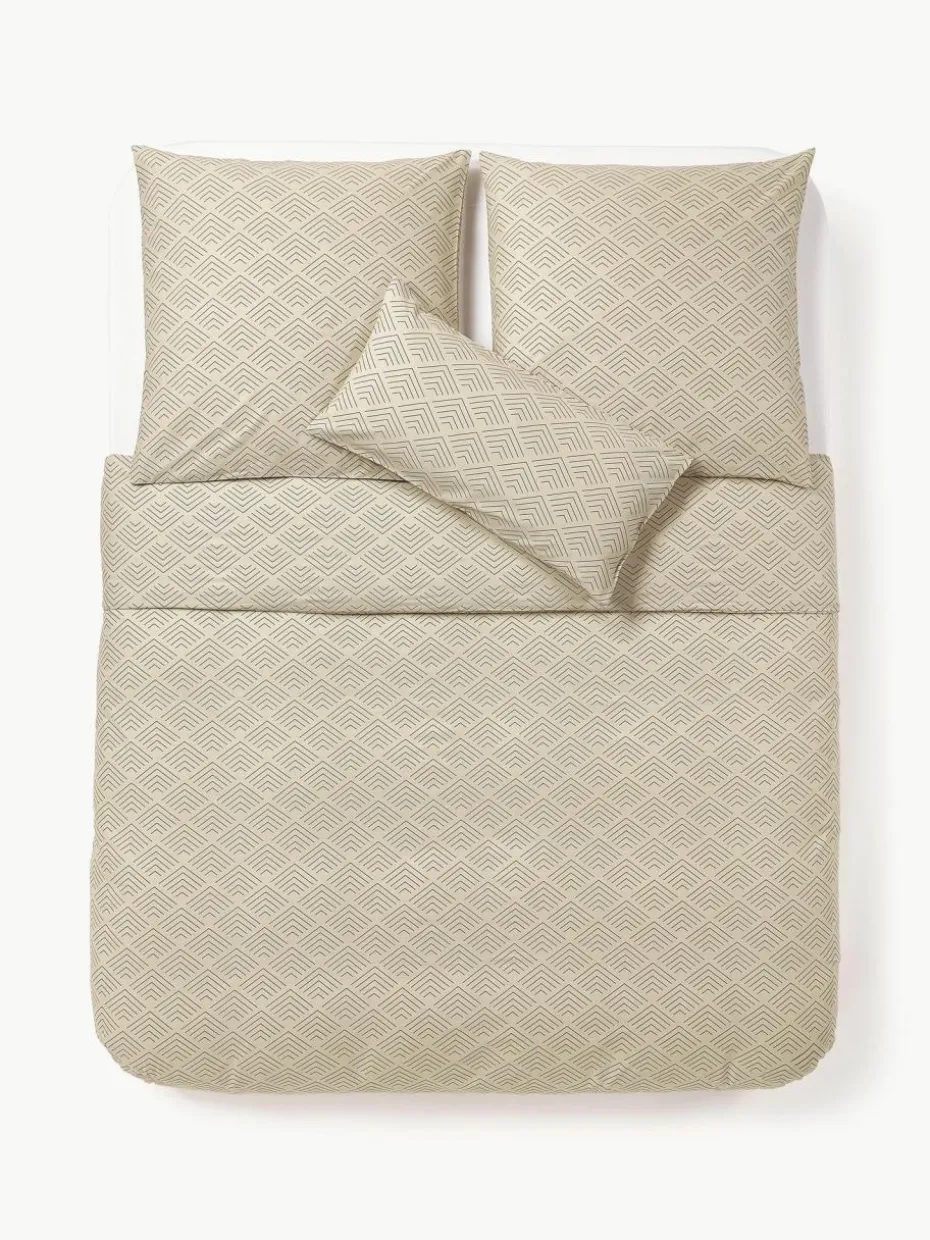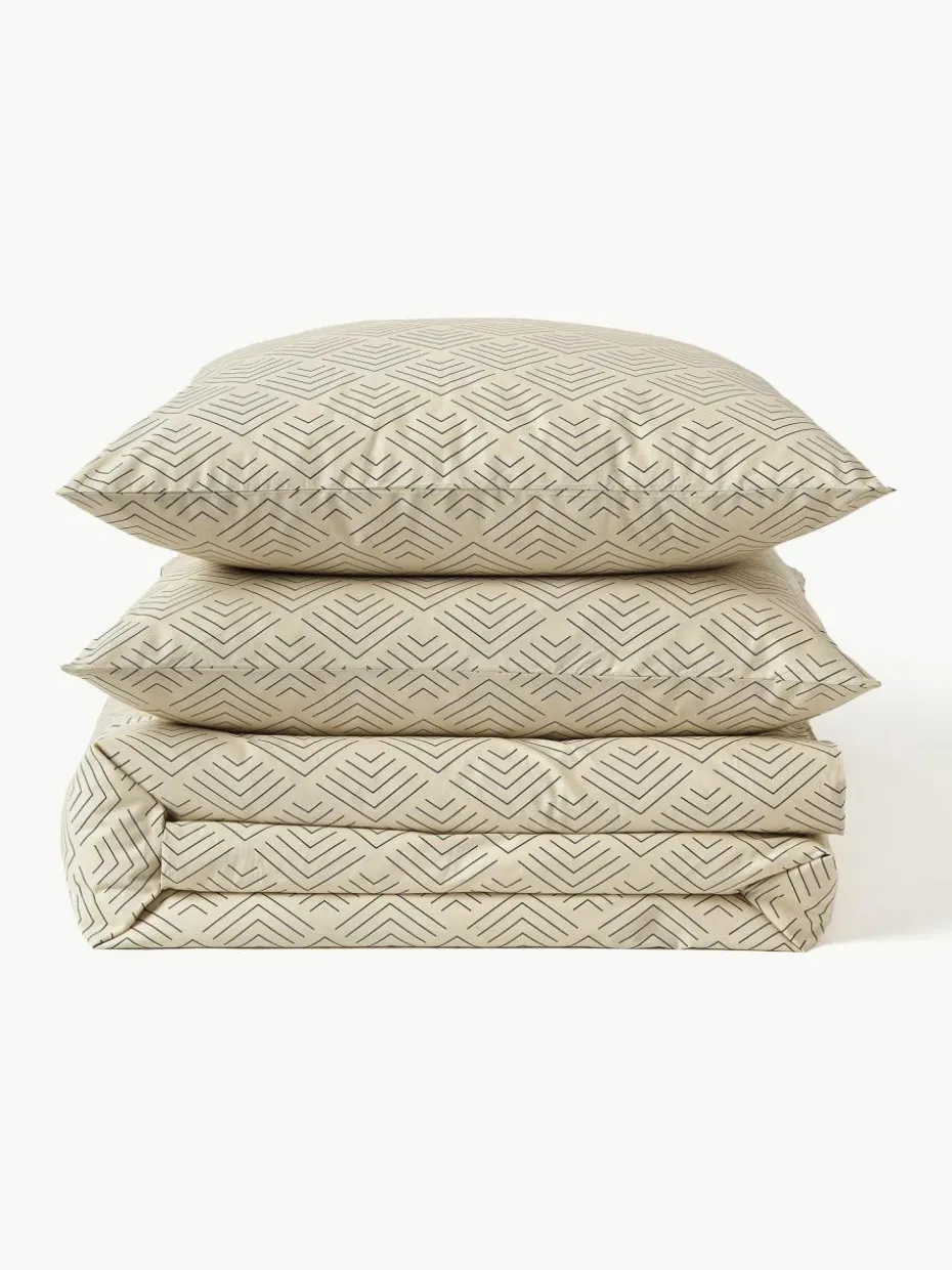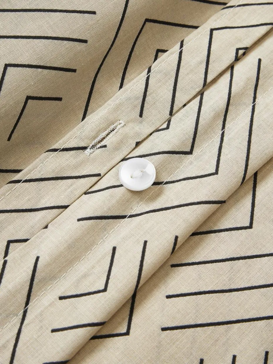 Der Baumwoll-Bettdeckenbezug mit gemusterter Vorderseite und Rückseite verfügt über einen Knopfverschluss.