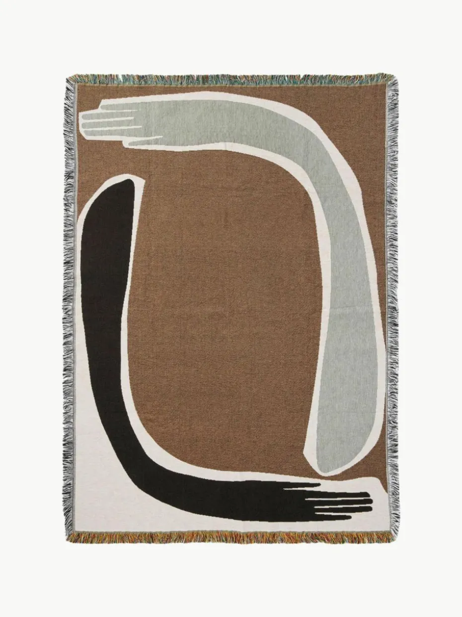 Die Baumwolldecke POSE zeigt stilisierte Armmotive, die von antiken „Kastagnetten“ inspiriert sind: Schlaginstrumente in Form von Unterarmen, die menschliche Verbundenheit, Kreativität und Ausdruck symbolisieren. Diese Decke ist aus GOTS-zertifizierter Bio-Baumwolle in klassischer Gobelintechnik gewebt und mit dekorativen Fransen an den Rändern versehen. Sie lässt sich vielseitig einsetzen: lässig über die Armlehne des Sofas drapieren oder als haptische Dekoration an die Wand hängen.“,“pdp_care_label“:“Schonwaschgang bei 30 °C