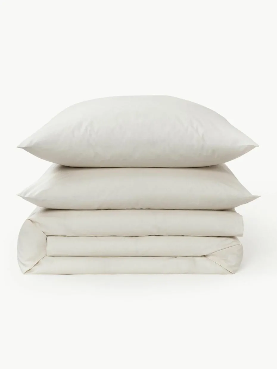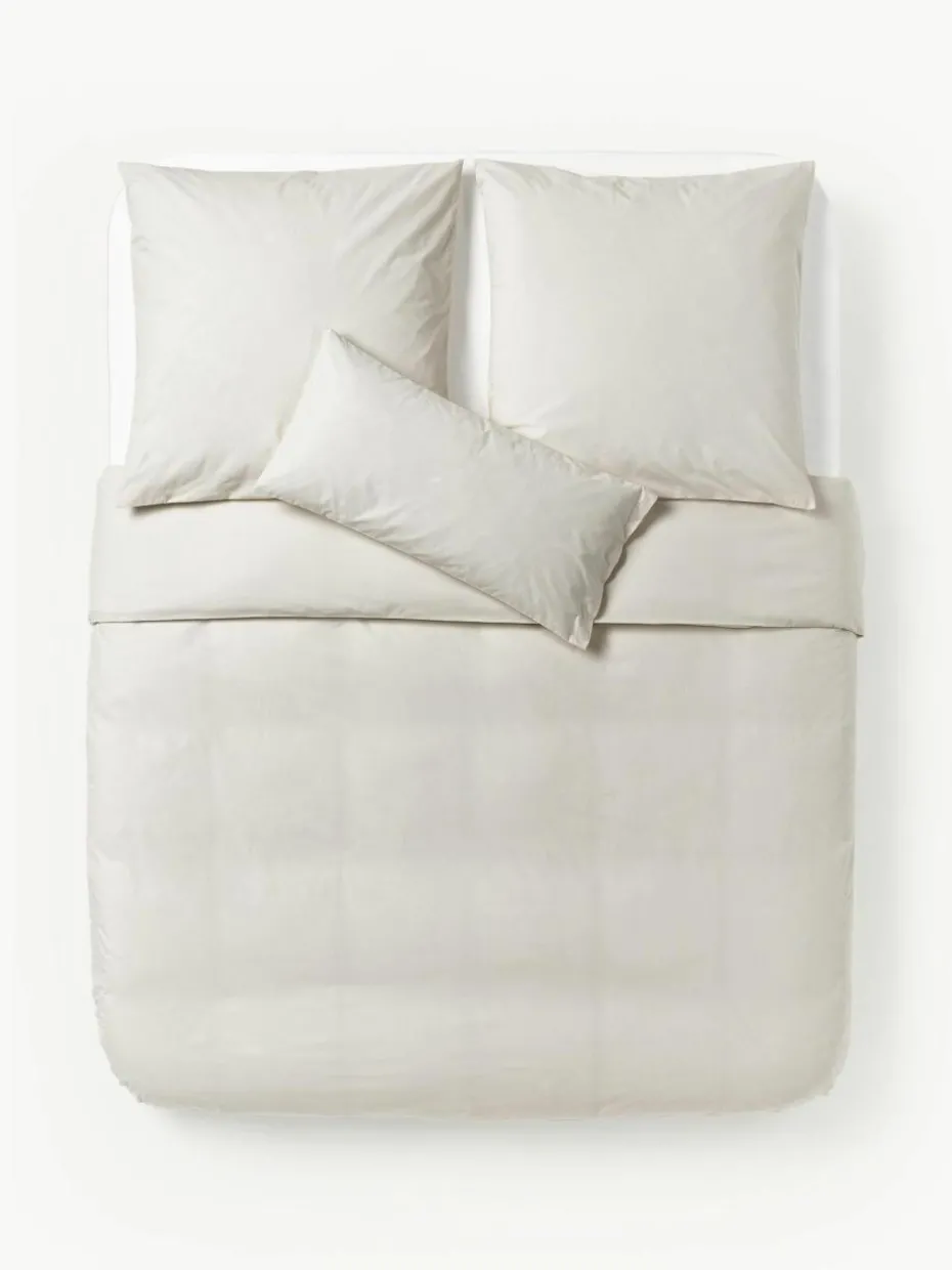 Der Baumwollperkal-Bettdeckenbezug verfügt über einen Knopfverschluss und wurde in Portugal gefertigt.