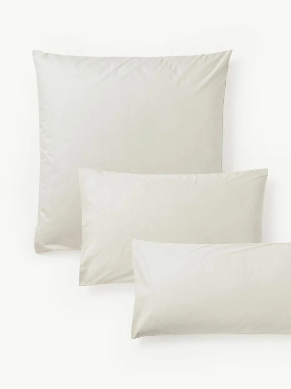 Der Baumwollperkal-Kopfkissenbezug verfügt über einen Knopfverschluss und wurde in Portugal gefertigt.