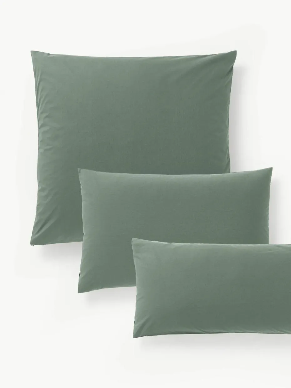 Der Baumwollperkal-Kopfkissenbezug verfügt über einen Knopfverschluss und wurde in Portugal gefertigt.
