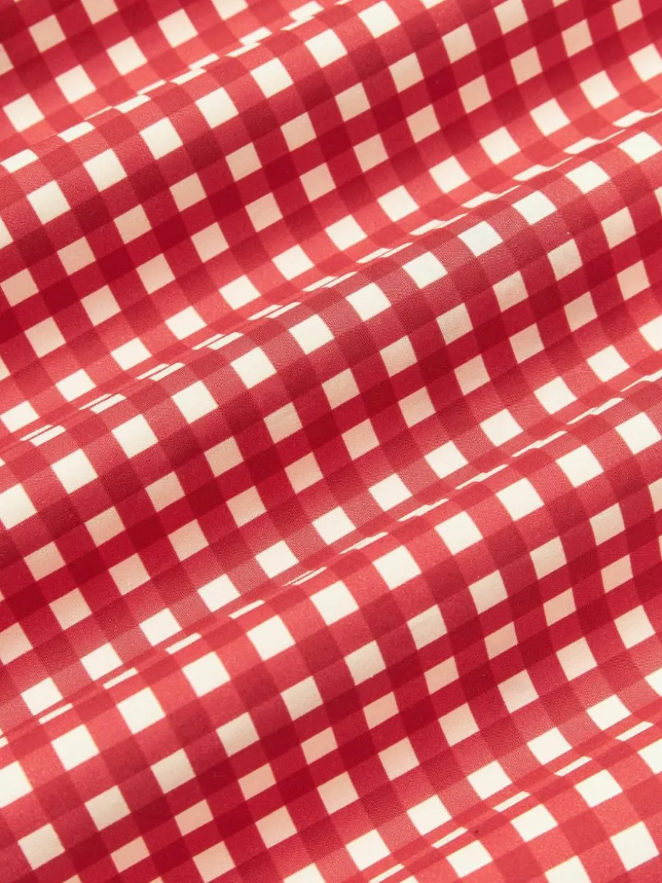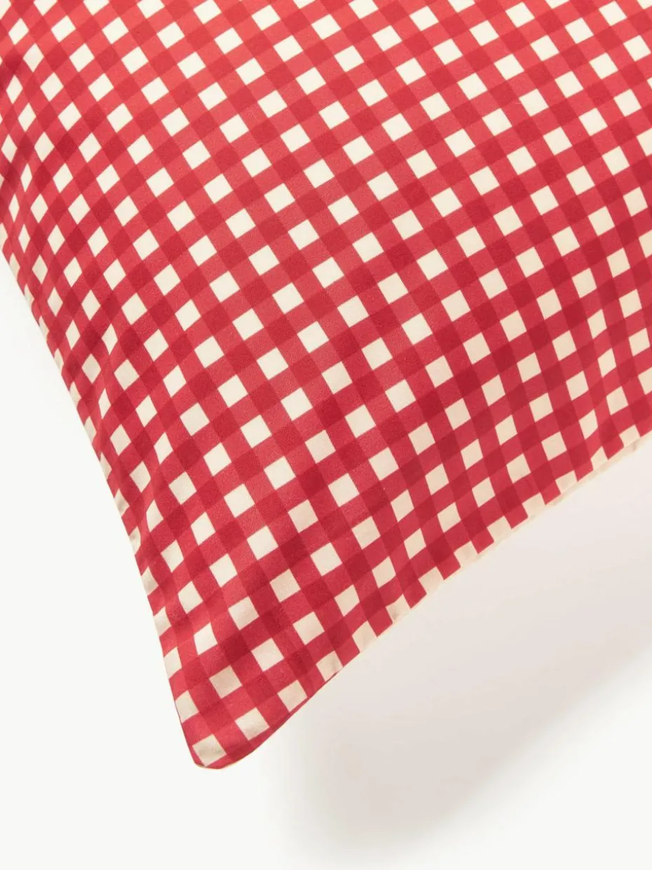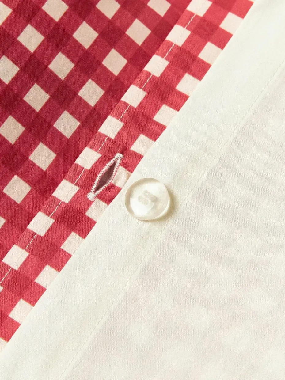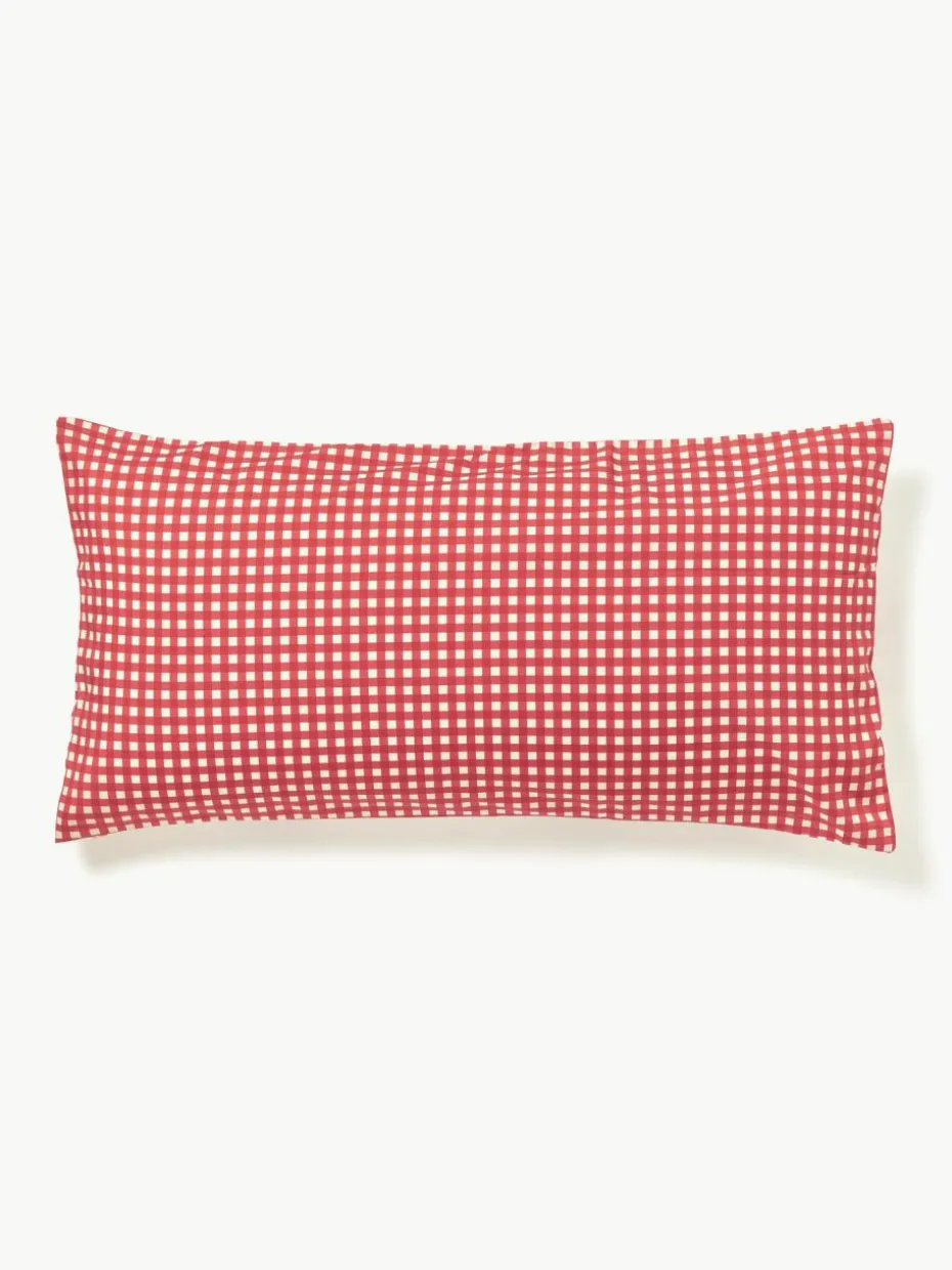 Der Kopfkissenbezug mit winterlichem Muster auf der Vorderseite und karierter Rückseite verfügt über einen Knopfverschluss und wurde in Portugal gefertigt.