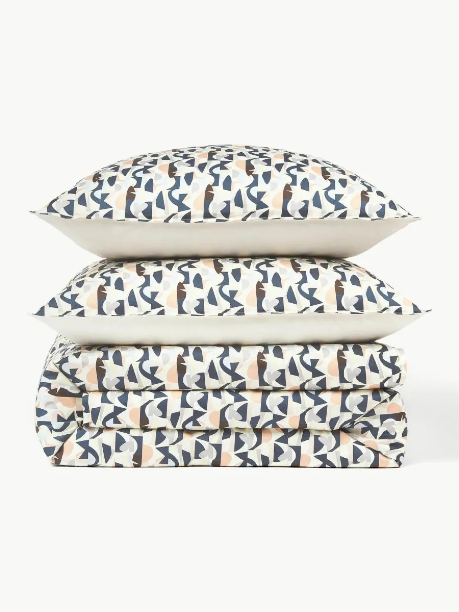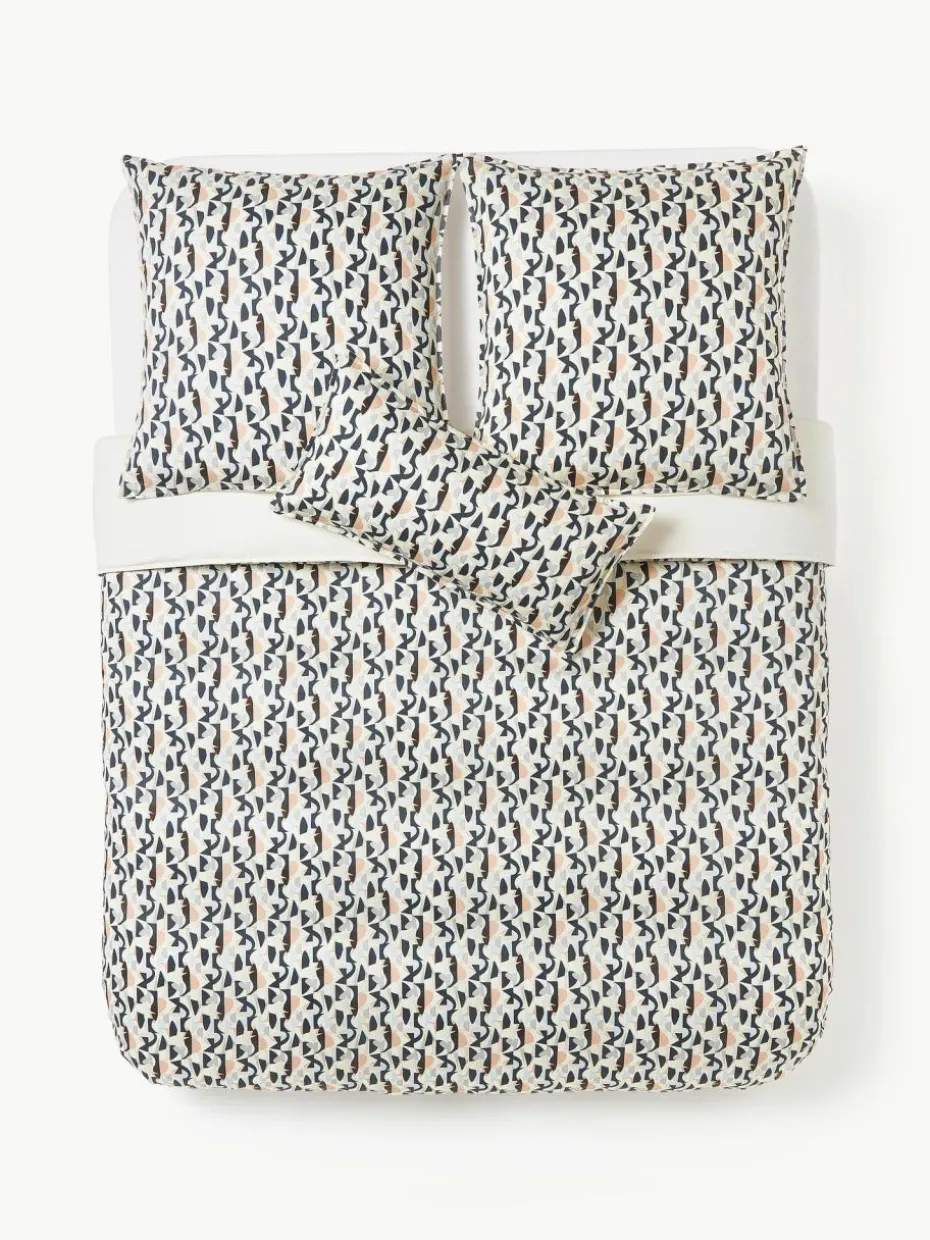 Der Satin-Bettdeckenbezug verfügt über einen Knopfverschluss und wurde in Portugal gefertigt.