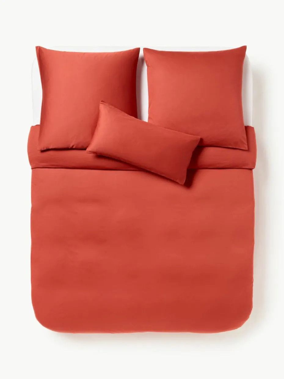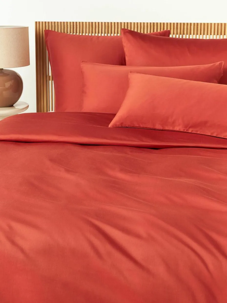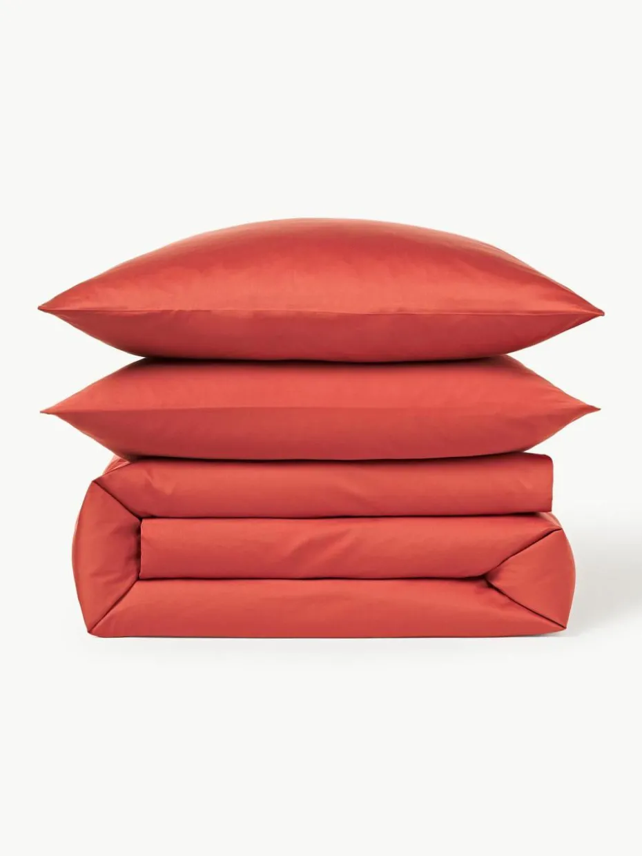 Der Baumwollsatin-Bettdeckenbezug verfügt über einen Knopfverschluss und wurde in Portugal gefertigt.