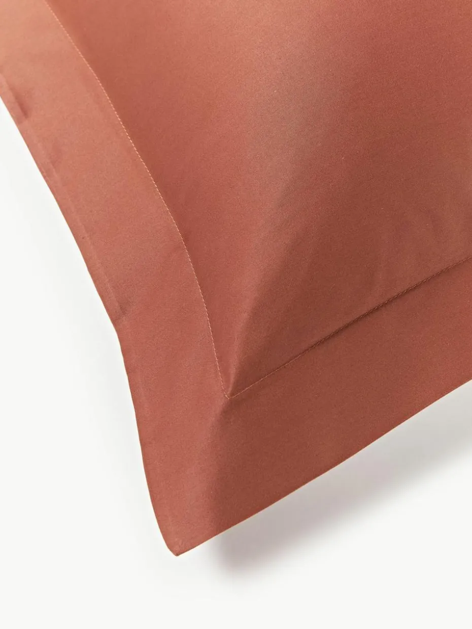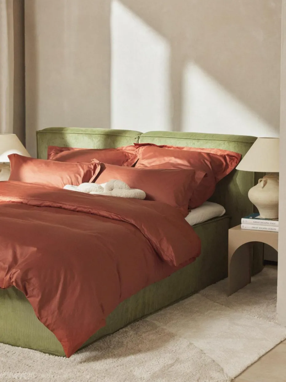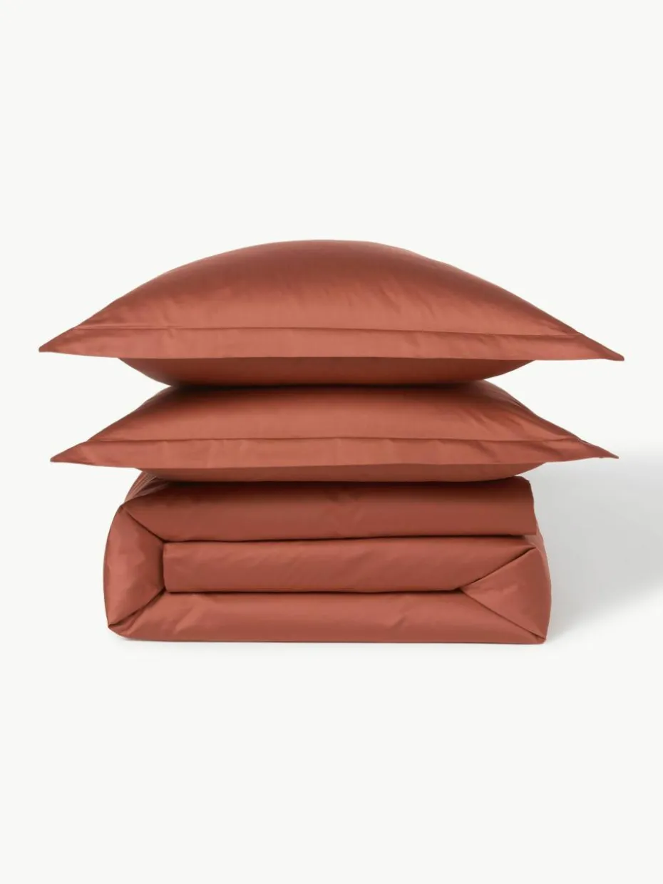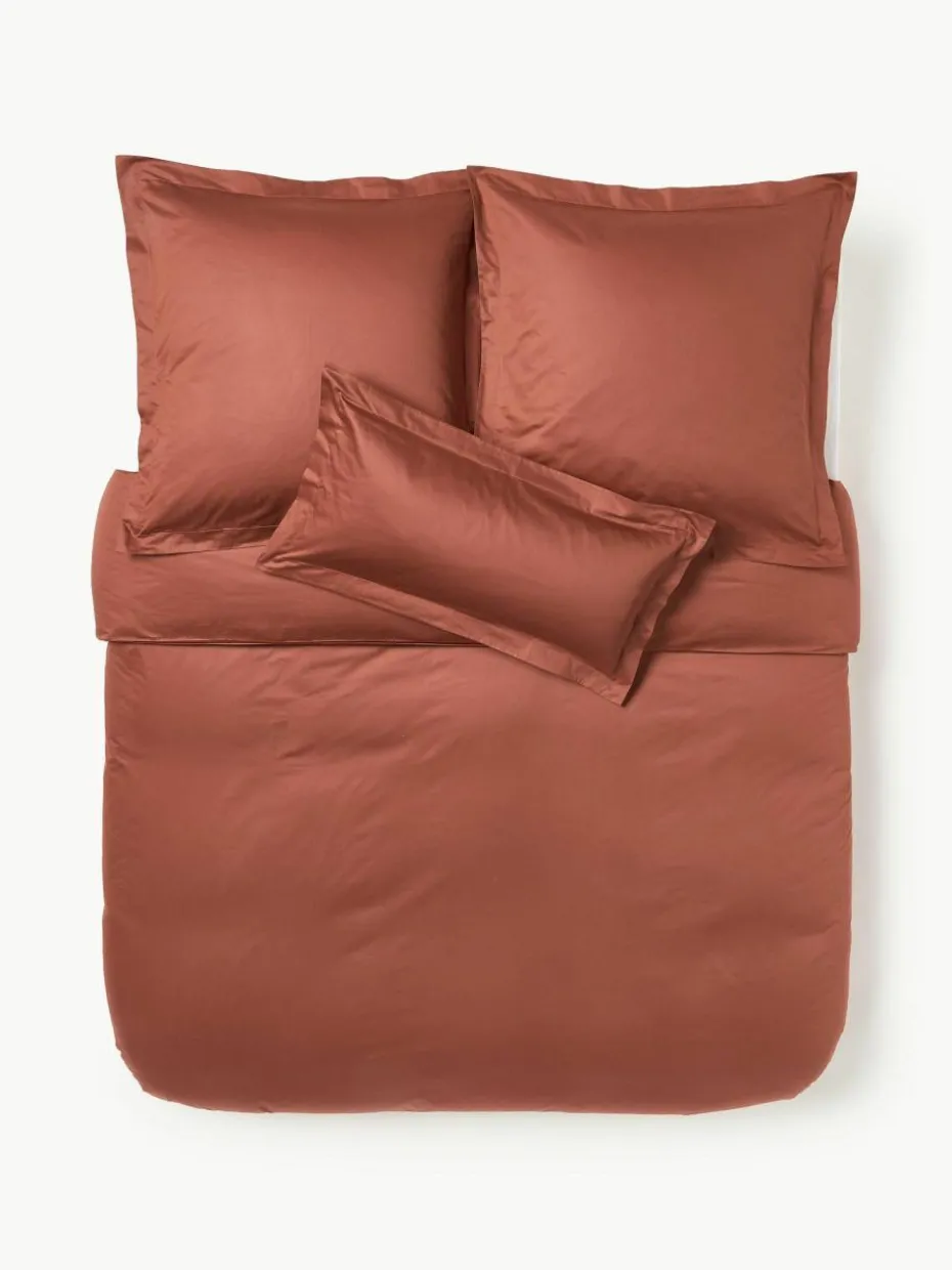 Der Baumwollsatin-Bettdeckenbezug mit Stehsaum verfügt über einen Knopfverschluss und wurde in Portugal gefertigt.