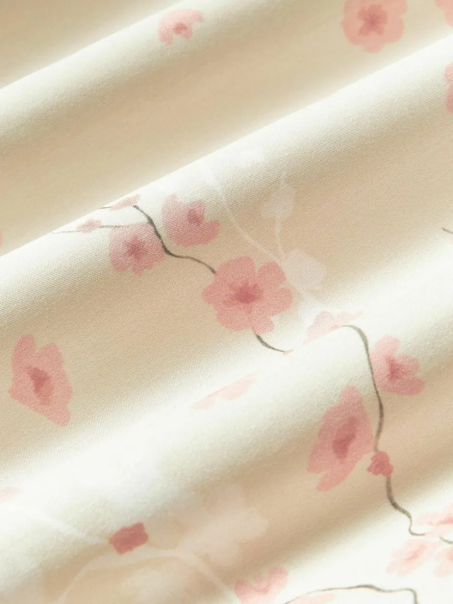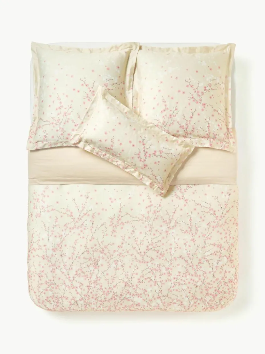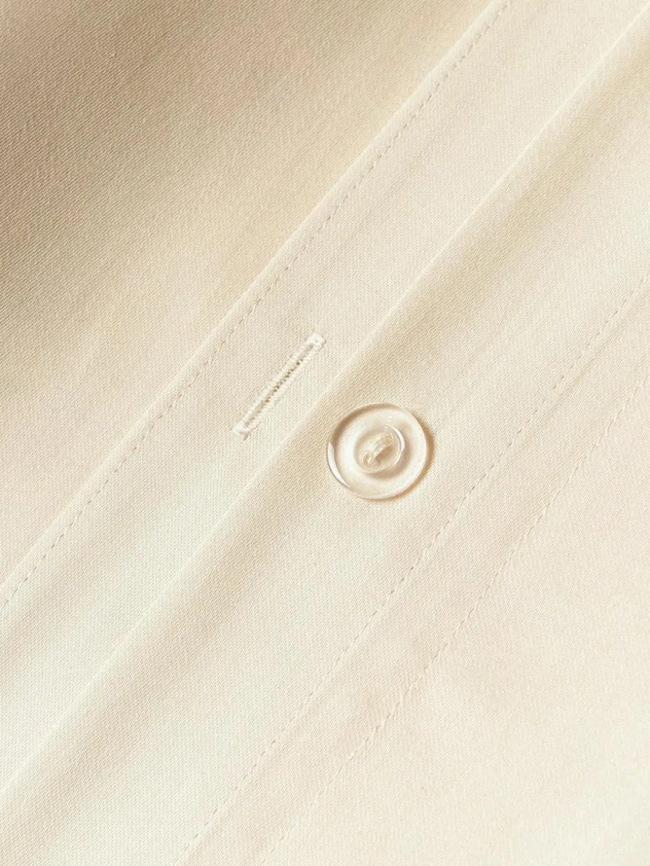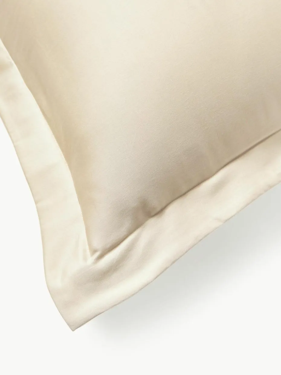 Der Baumwollsatin-Kopfkissenbezug im Japandi Style verfügt über einen Knopfverschluss.