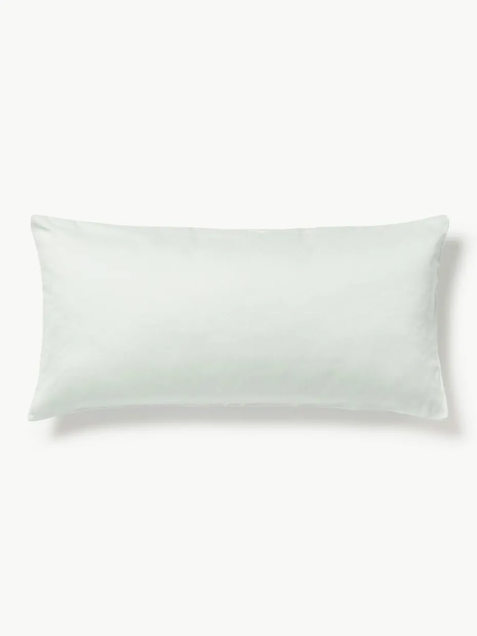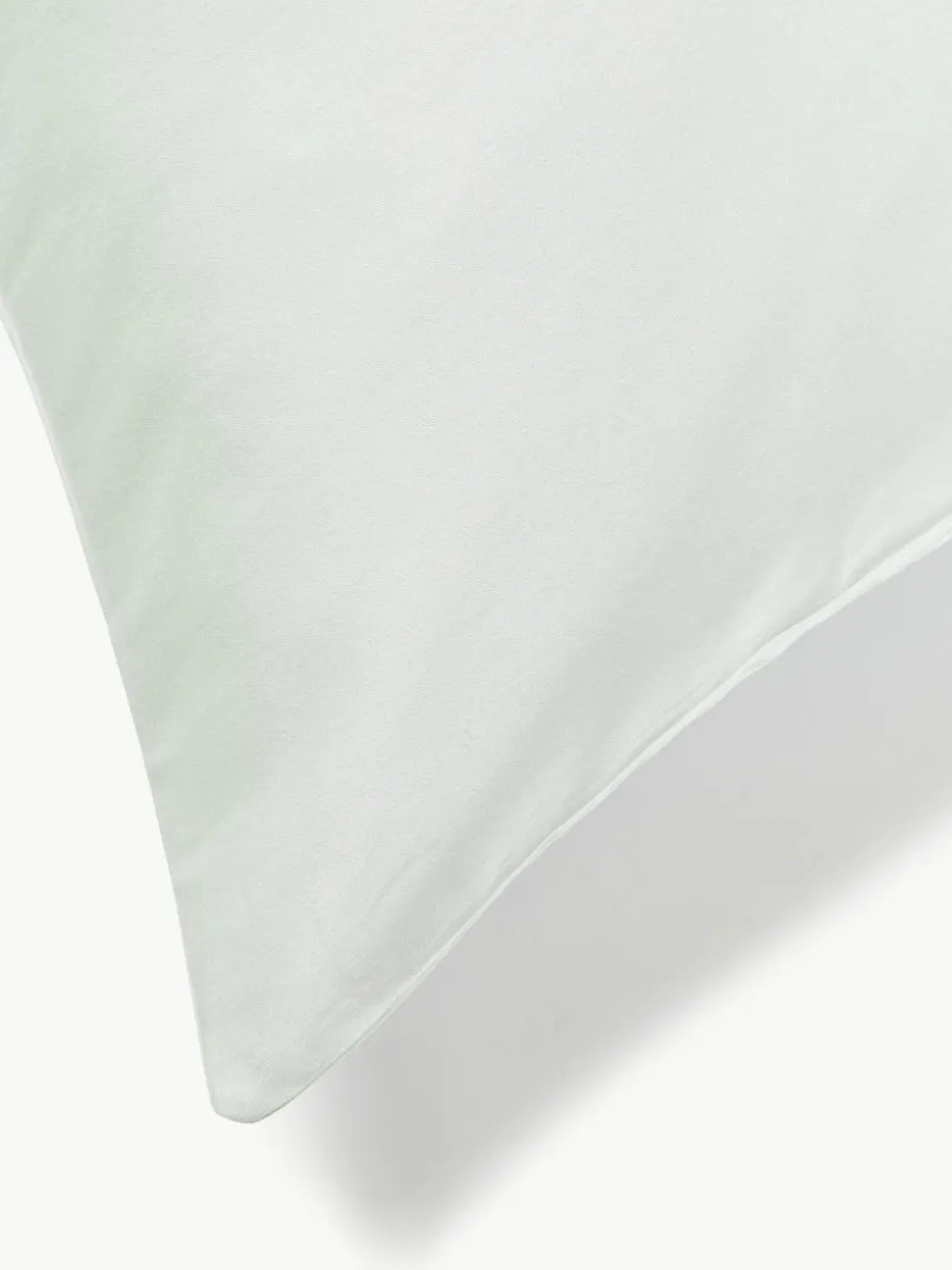 Der Baumwollsatin-Kopfkissenbezug verfügt über einen Knopfverschluss.
