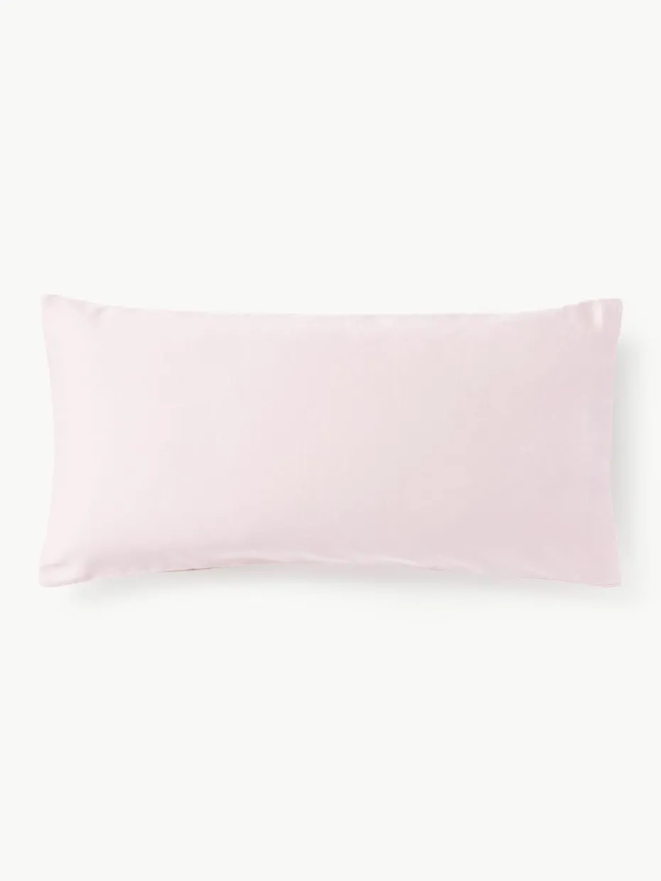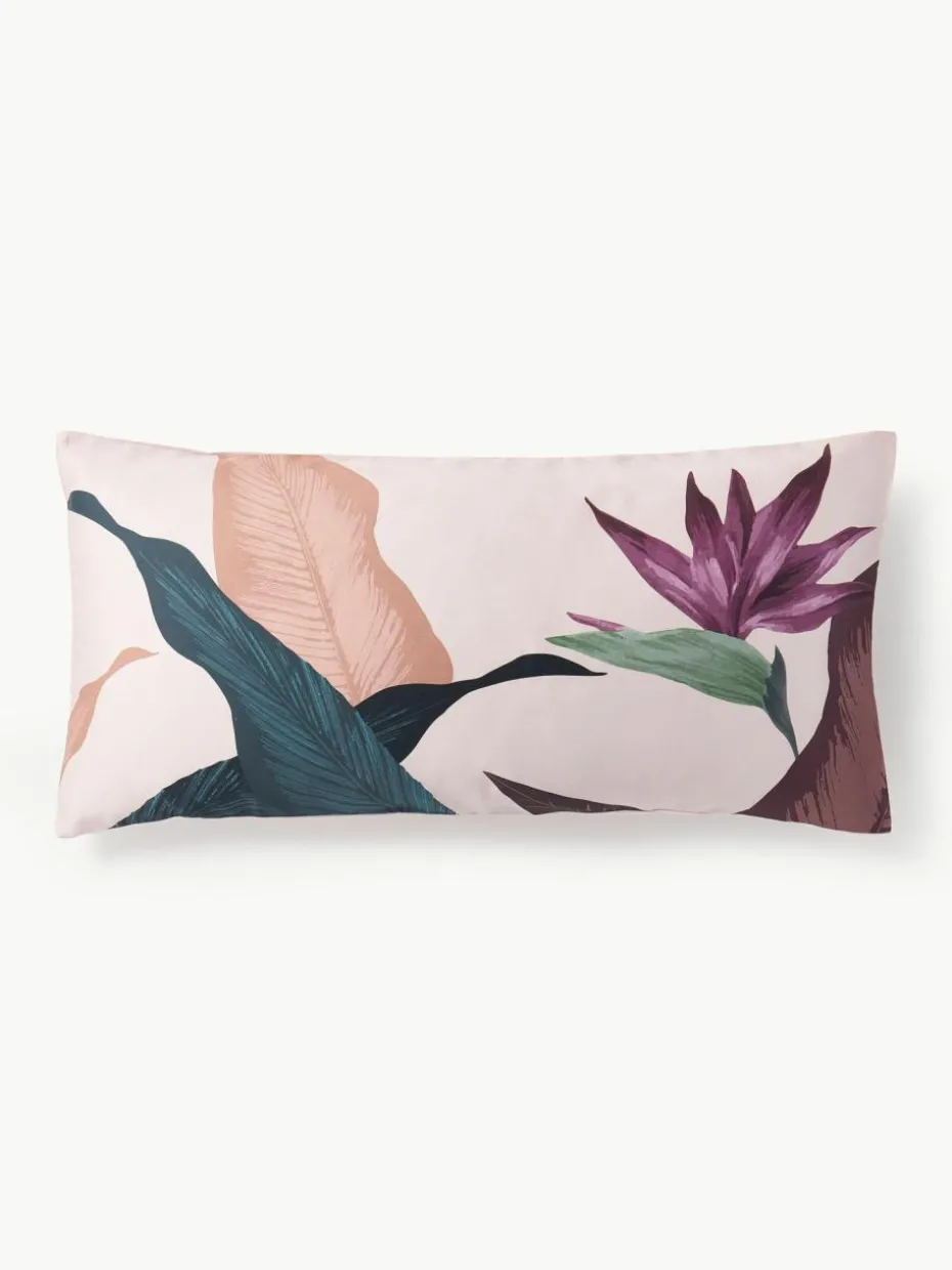 Der Baumwollsatin-Kopfkissenbezug mit Blumen-Print auf der Vorderseite und unifarbener Rückseite verfügt über einen Knopfverschluss und wurde in Portugal gefertigt.