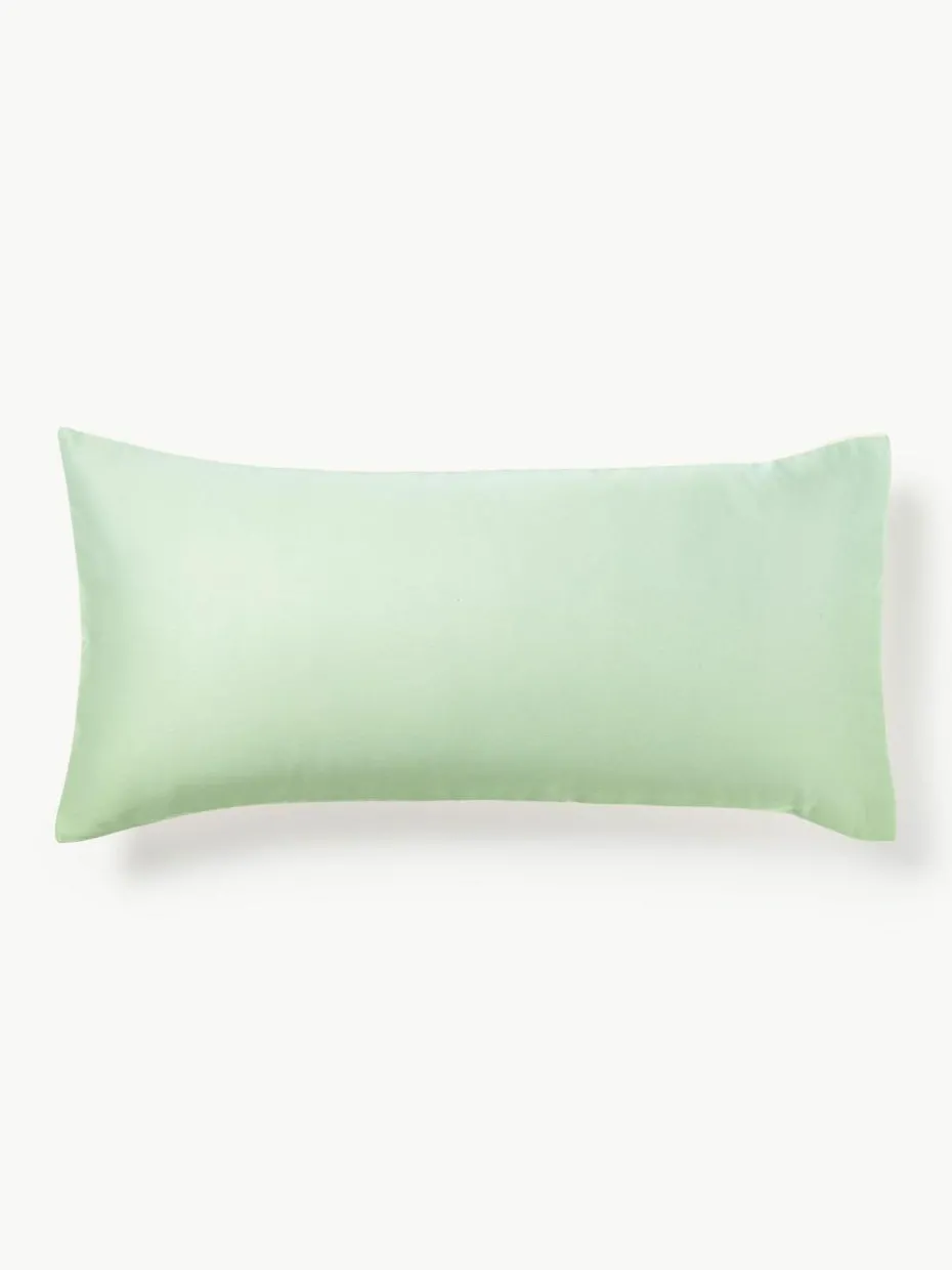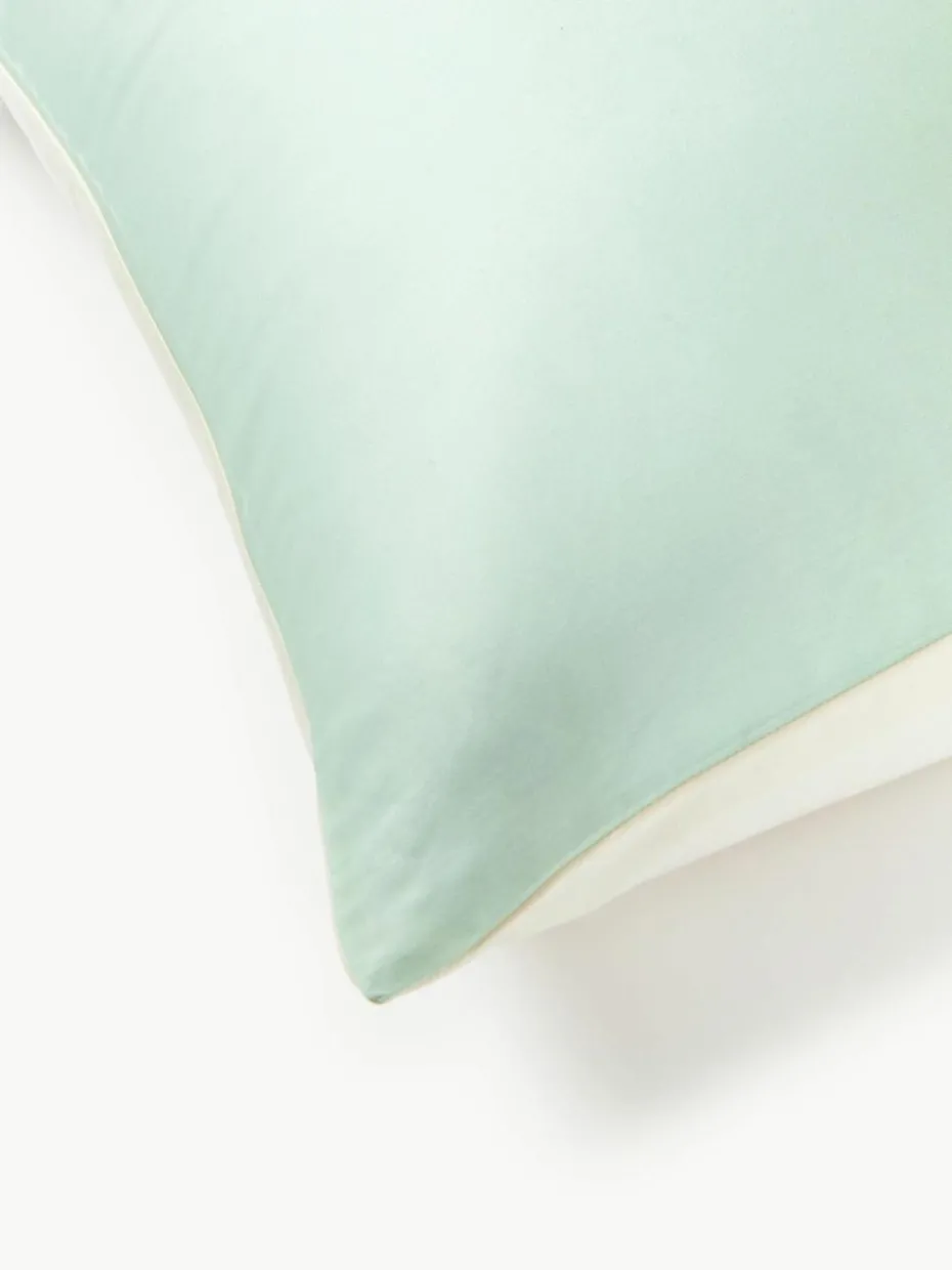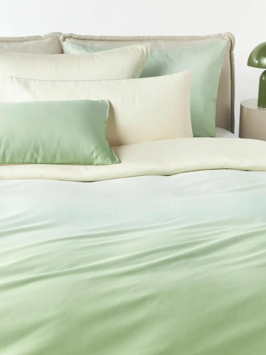 Der Baumwollsatin-Kopfkissenbezug mit Farbverlauf auf der Vorderseite und unifarbener Rückseite verfügt über einen Knopfverschluss und wurde in Portugal gefertigt.
