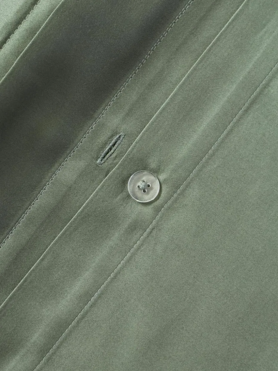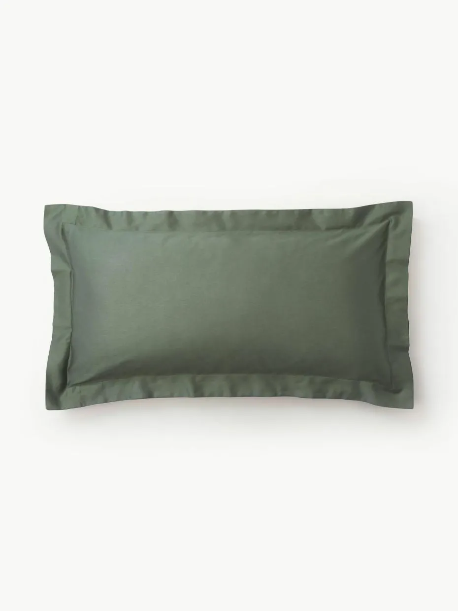 Der Baumwollsatin-Kopfkissenbezug mit Stehsaum verfügt über einen Knopfverschluss und wurde in Portugal gefertigt.