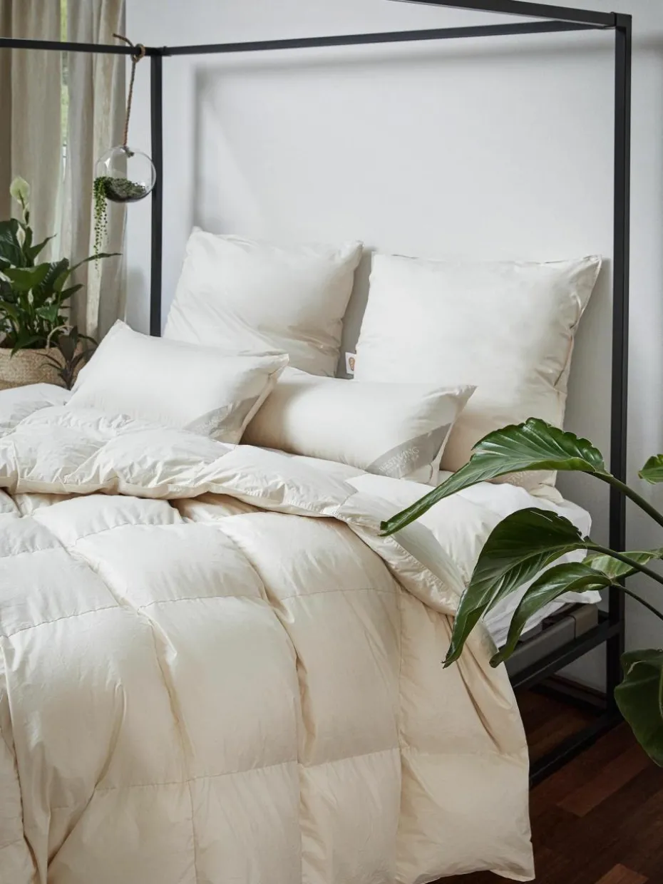 Dieses Produkt ist Downpass-zertifiziert: Die Produkte sind mit Federn und Daunen der beiden höchsten Klassen gefüllt und wurden als Nebenprodukt gewonnen.