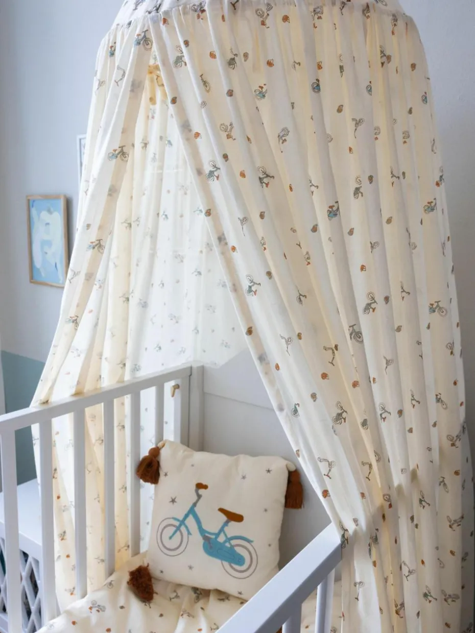 Hänge den Himmel über das Bett oder in eine Ecke, um eine gemütliche Höhle zu schaffen. Mit einem schönen Betthimmel kannst Du einen gemütlichen Raum im Zimmer schaffen, in dem Dein Kind spielen, lesen, schlafen oder sich entspannen kann.