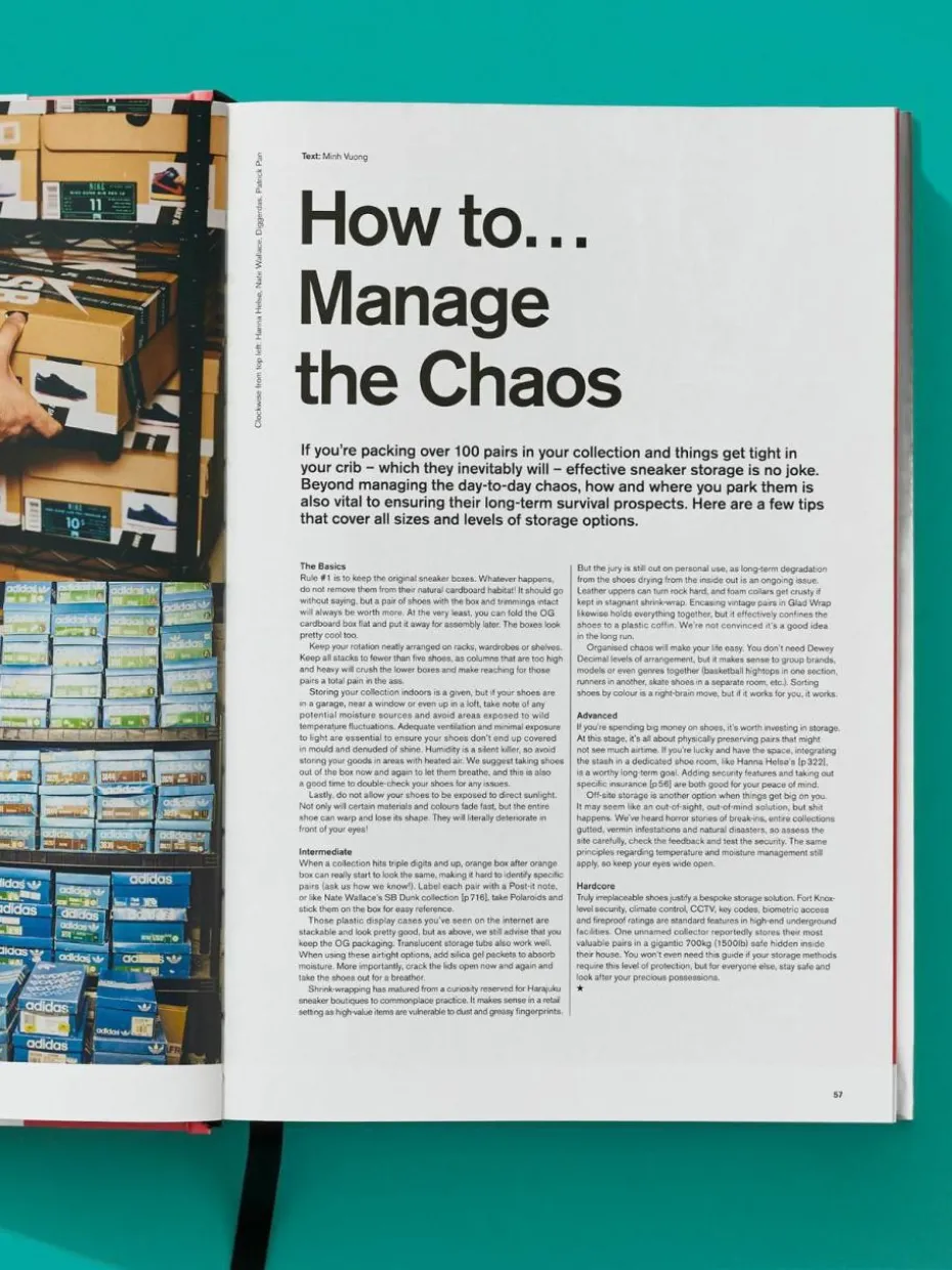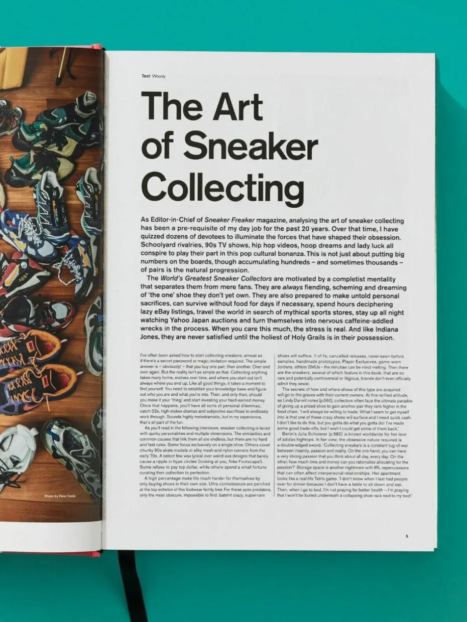 Sneaker sammeln ist eine Kunst für sich. Wer es ernst meint, überlässt den nächsten großen Fang nicht dem Zufall. Sneaker Freaker öffnet jetzt die heiligen Schuhschränke und Trickkisten findiger Turnschuhnerds: begehrte Klassiker, signierte Spielermodelle und Profitipps, wie man seine kostbaren Schätze richtig fotografiert, lagert und vermehrt.
