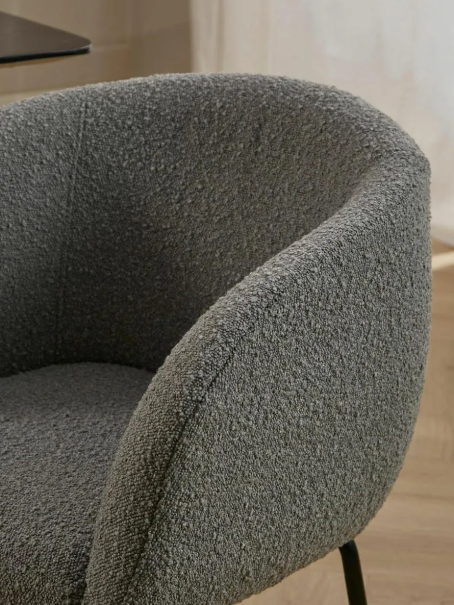 Erlebe den ALANI Armlehnstuhl – die perfekte Kombination aus Komfort und modernem Design. Mit seiner weichen, gepolsterten Sitzfläche und den geschwungenen Armlehnen bietet ALANI ein besonders angenehmes Sitzerlebnis. Die schlanken Metallbeine verleihen dem Stuhl eine elegante Leichtigkeit, während der neutrale Stoffbezug ihn vielseitig einsetzbar macht. Egal ob im Esszimmer, Arbeitszimmer oder Wohnbereich – der ALANI Stuhl fügt sich nahtlos in jedes Ambiente ein und überzeugt durch seine zeitlose Ästhetik und Funktionalität.“,“pdp_care_label“:“Der Bezug ist nicht abnehmbar.