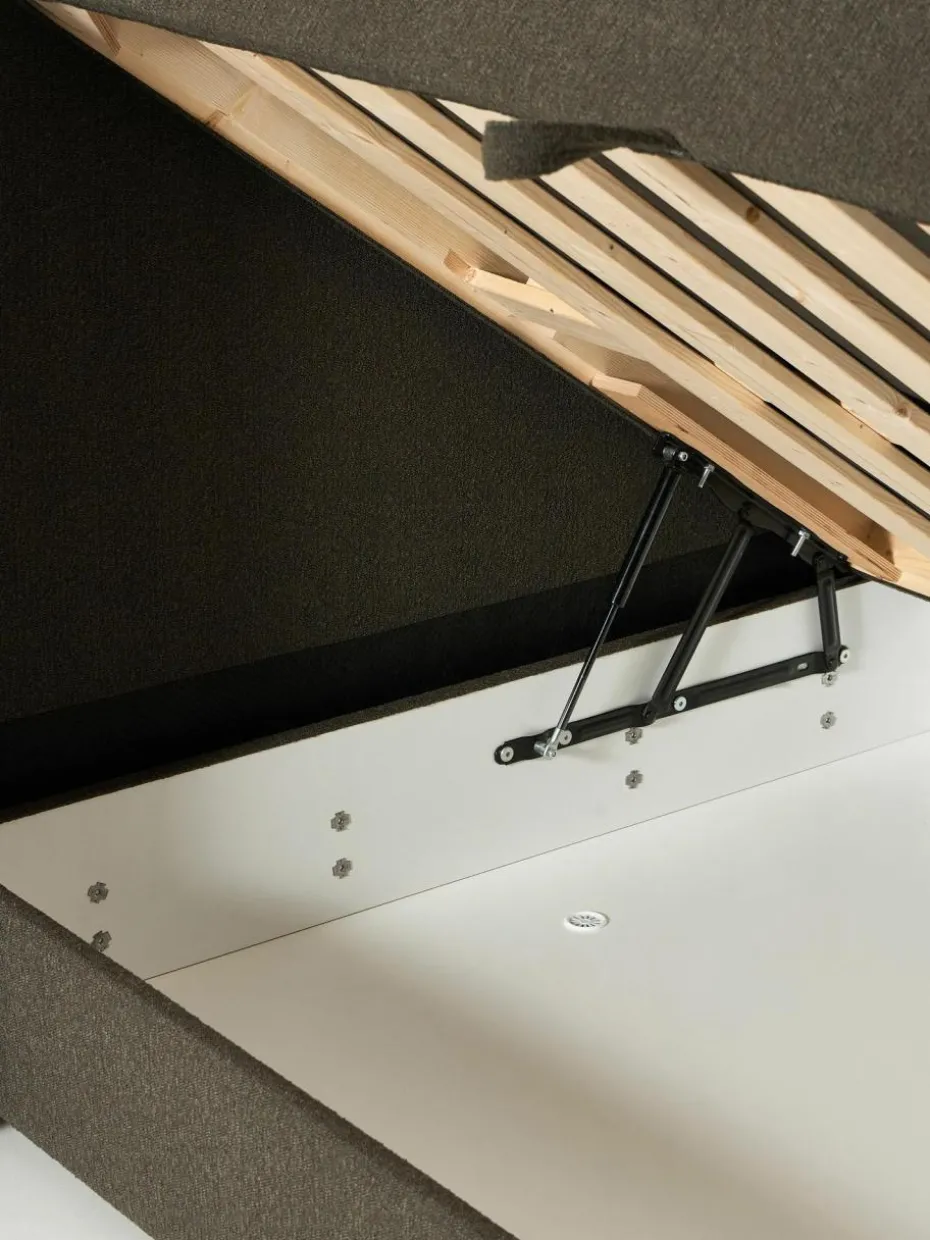 Das Boxspringbett verfügt über eine Stauraumfunktion.