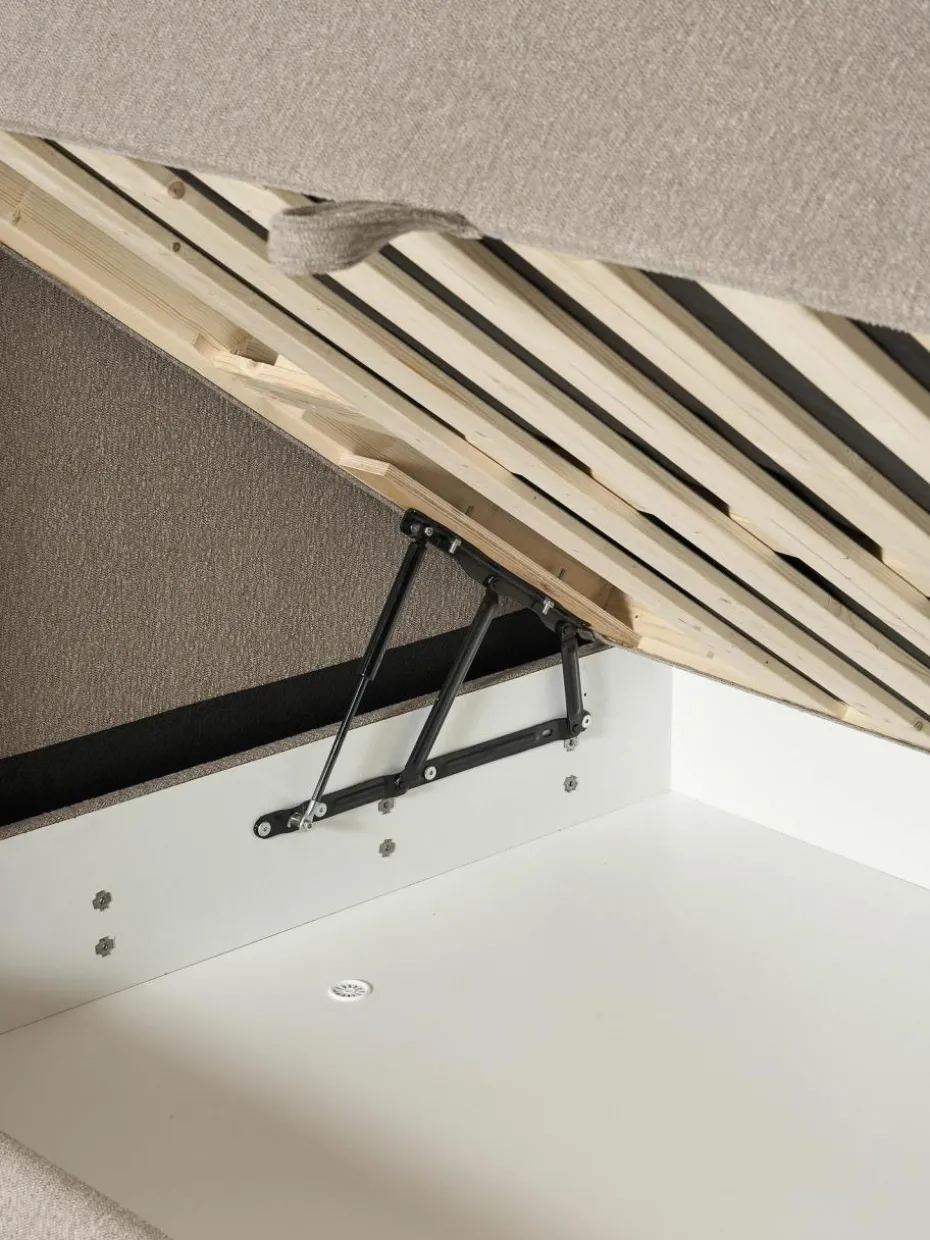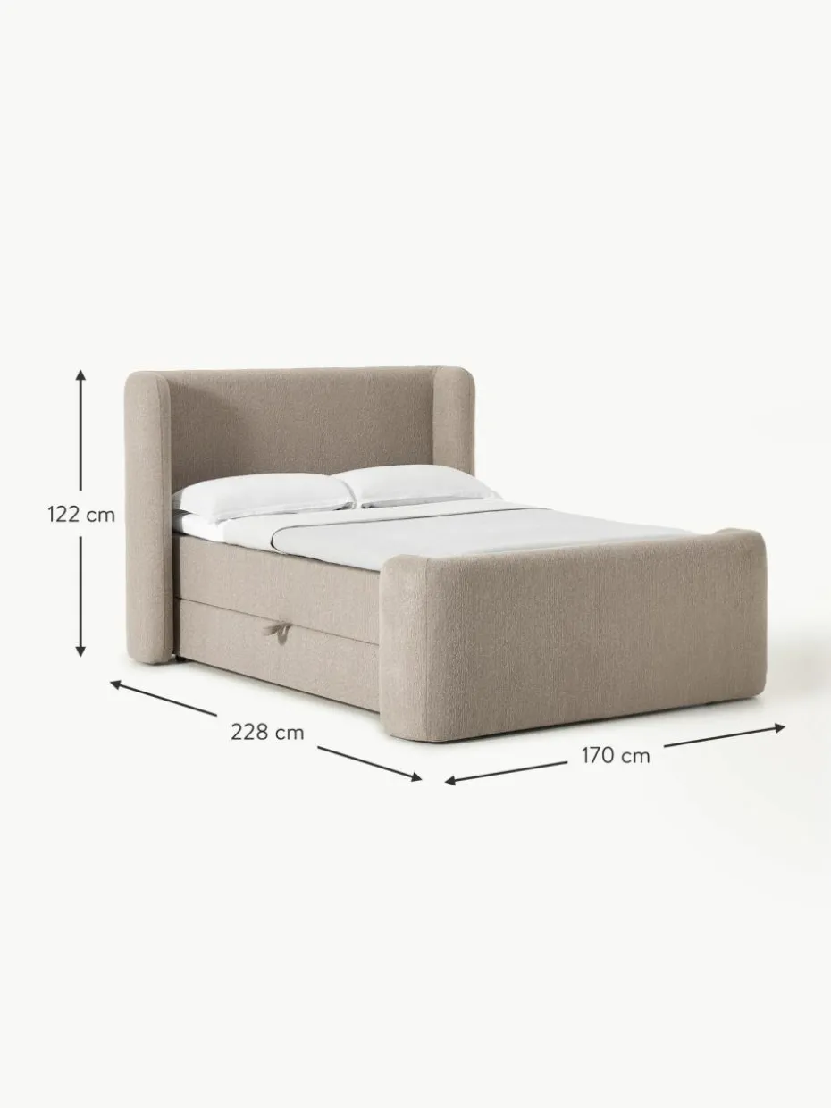 Das Boxspringbett verfügt über eine Stauraumfunktion.