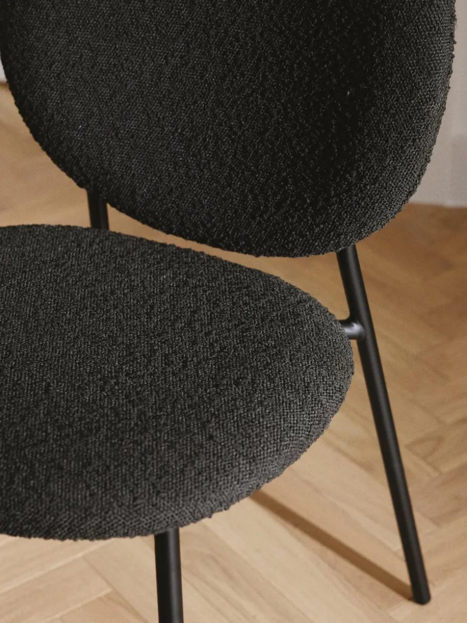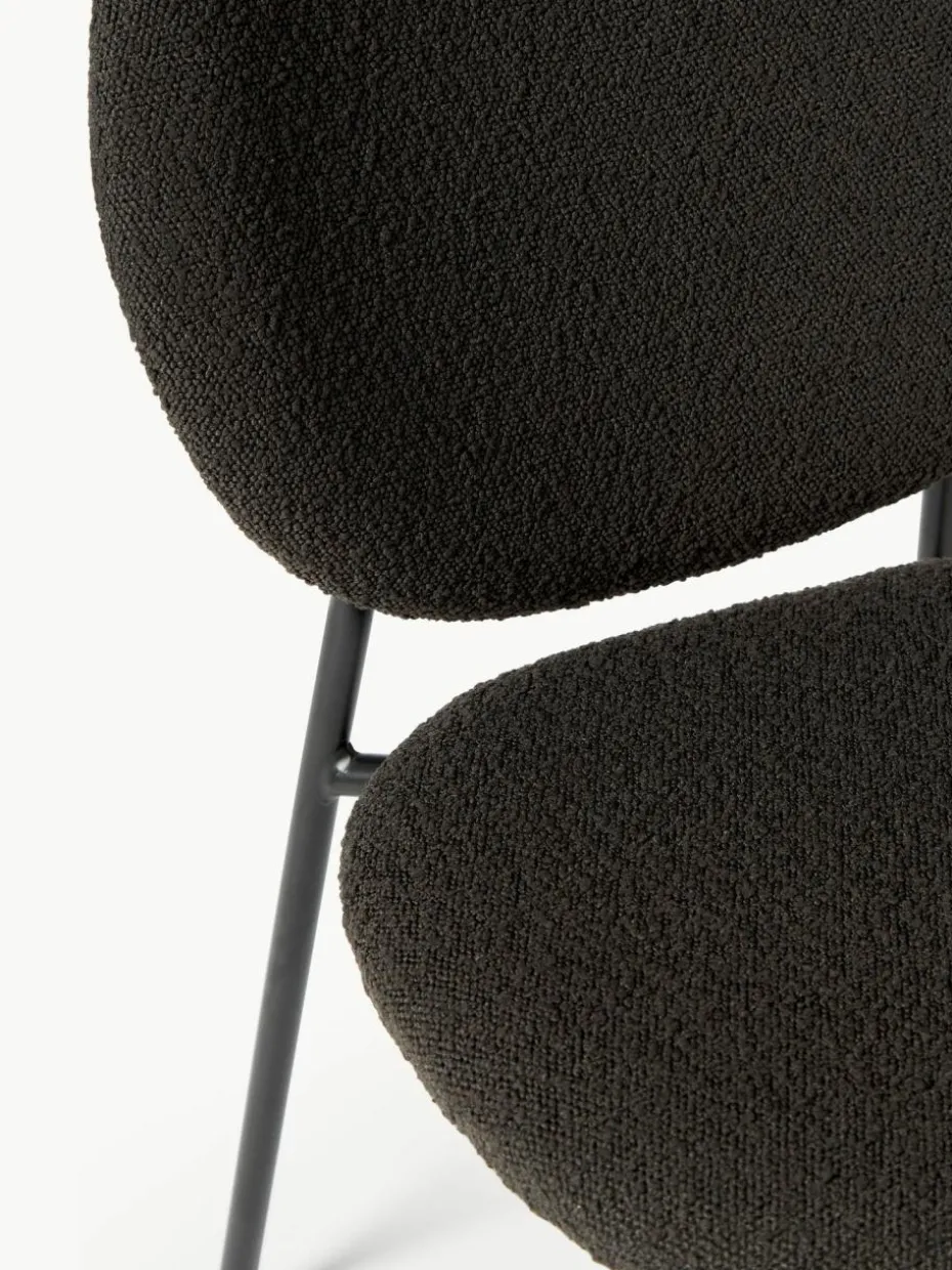 We love Bouclé! Von diesem Stoff können wir nicht genug bekommen. Bestes Beispiel: Unsere Stühle ULRICA. Die weich gepolsterten aus grob-kuscheligem Bouclé gearbeiteten Stühle vereinen Sitzkomfort (bis weit nach dem Dessert!) mit Design-Trends und sind daher unser Must-have der Stunde. Good to know: Bouclé bedeutet im Französischen „Schleife“ oder „Schnuppe“. Getreu dem Namen handelt es sich also um Textilien mit kleinen Schlingen, die dadurch knotig erscheinen. Wie stylen? Gleich und gleich gesellt sich gern, das gilt auch beim Trend-Gewebe!“,“pdp_care_label“:“Das Produkt wird platzsparend verpackt geliefert und kann nach Montage der Beine sofort verwendet werden.