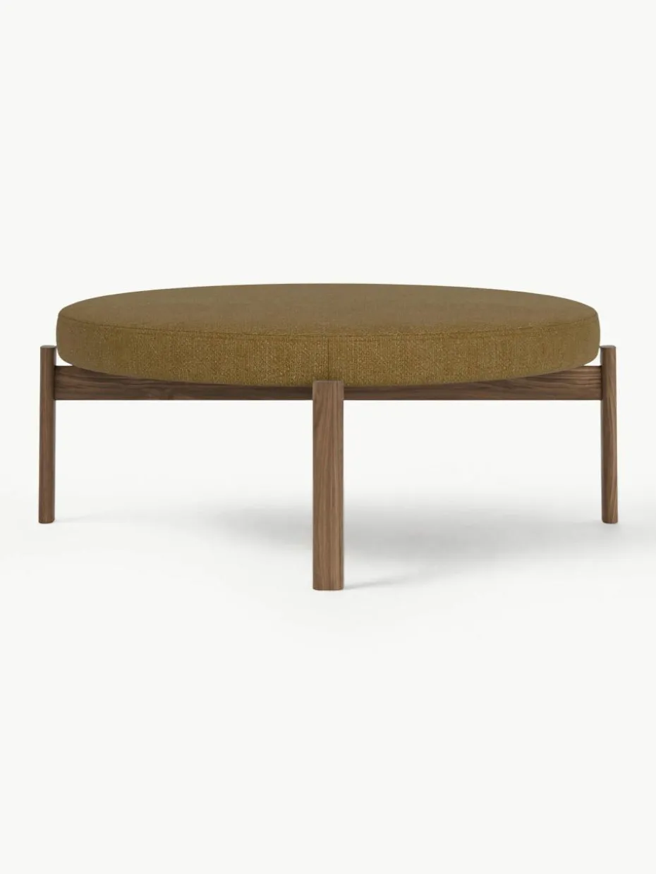 Als exklusive Ergänzung der PASSAGE Kollektion verleiht der Pouf jedem Raum einen Hauch von Eleganz und macht ihn zu einem herausragenden Stück, das das Gesamtambiente sowie die Funktion aufwertet. Das vielseitige Design eignet sich ideal als zusätzliche Sitzgelegenheit und ist perfekt für Wohnzimmer, große Flure, begehbare Kleiderschränke und vieles mehr. Das gepolsterte Sitzkissen lässt sich mit einer großen Auswahl an Stoffen individuell gestalten, während das Gestell aus massivem, lackiertem Walnuss- oder Eichenholz dem Design Wärme und Raffinesse verleiht, gleichzeitig aber auch Haltbarkeit und Stabilität für eine lange Nutzung gewährleistet.