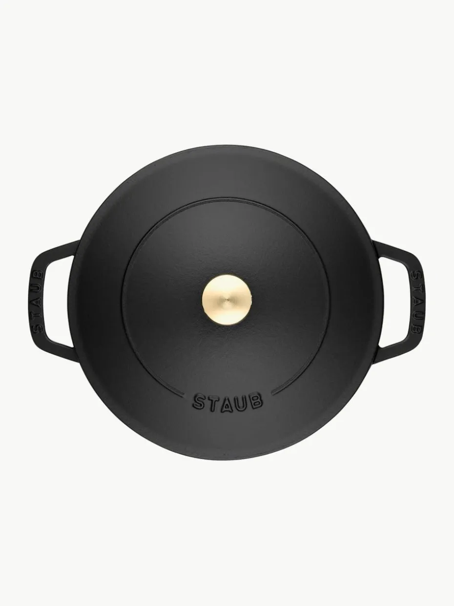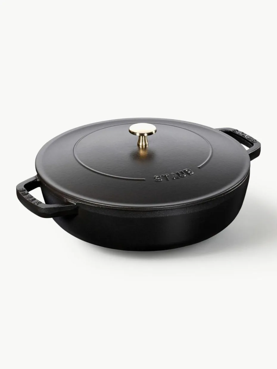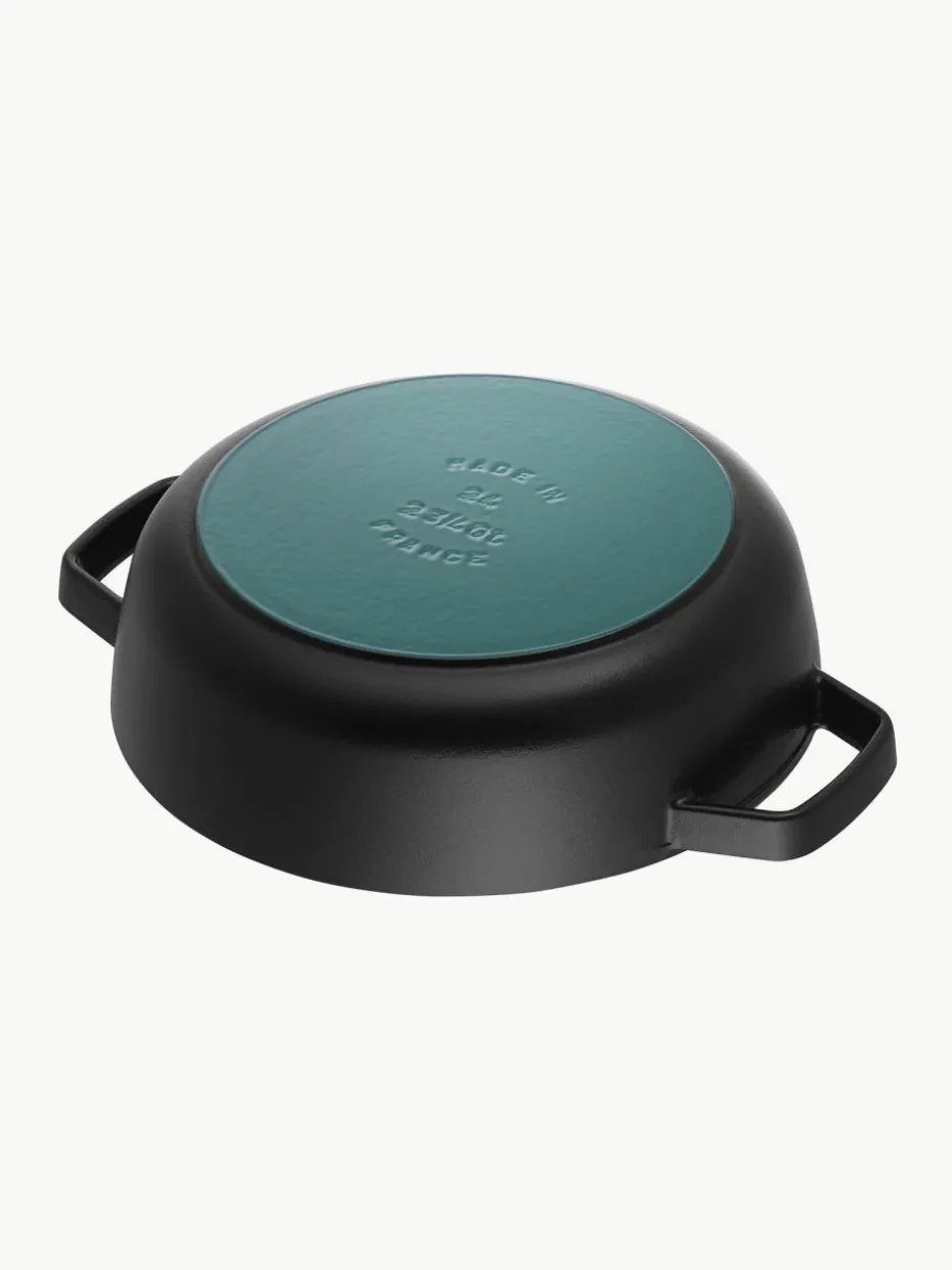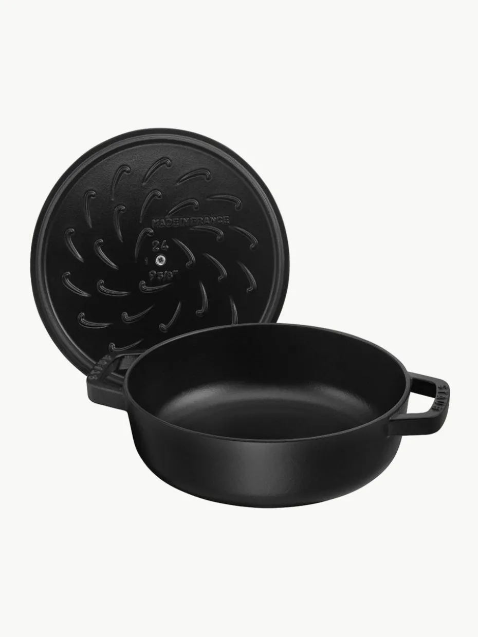Der Bräter Chistera vereint traditionelle Handwerkskunst mit moderner Funktionalität für einen einmaligen Genuss. Da das besondere Material nur wenig Fett zum Braten bedarf und der Deckel mit der speziellen Tropfenstruktur ausgestattet ist, können die köstlichen Speisen kalorienarm gekocht werden und überzeugen mit ihren vollen Aromen und Nährstoffen. So gelingen zarte, saftige Fleisch- und aromatische Gemüsegerichte wie von selbst. Das Gusseisen sorgt für eine optimale Hitzeverteilung. Sowohl Profi- als auch Hobbyköche finden in dem energiesparenden Bräter einen langlebigen Helfer.