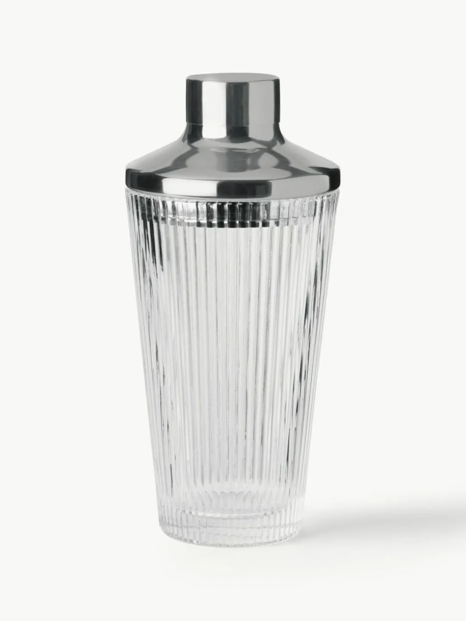 Ein Shaker, der sich mit seinem geriffelten Glas und dem glänzenden Stahl gut als dekoratives Element auf dem Bartisch macht und mit dem sich zugleich hervorragend leckere Cocktails zaubern lassen. Die Form ist dem traditionellen Manhattan Shaker nachempfunden, der aus drei Teilen besteht: einem Behälter, einem Filter und einem Deckel. Der Deckel ist so konzipiert, dass er auch als Messbecher dienen kann. Design und Funktion gehen bei diesem Cocktailshaker folglich Hand in Hand. Die Maße ermöglichen eine einfache Handhabung beim Shaken von Getränken in der Hausbar. Der Cocktailshaker ist entsprechend seiner Größe auch geeignet, nur ein einziges Getränk zuzubereiten.“,“pdp_care_label“:“Spülmaschinengeeignet bei max. 55 °C