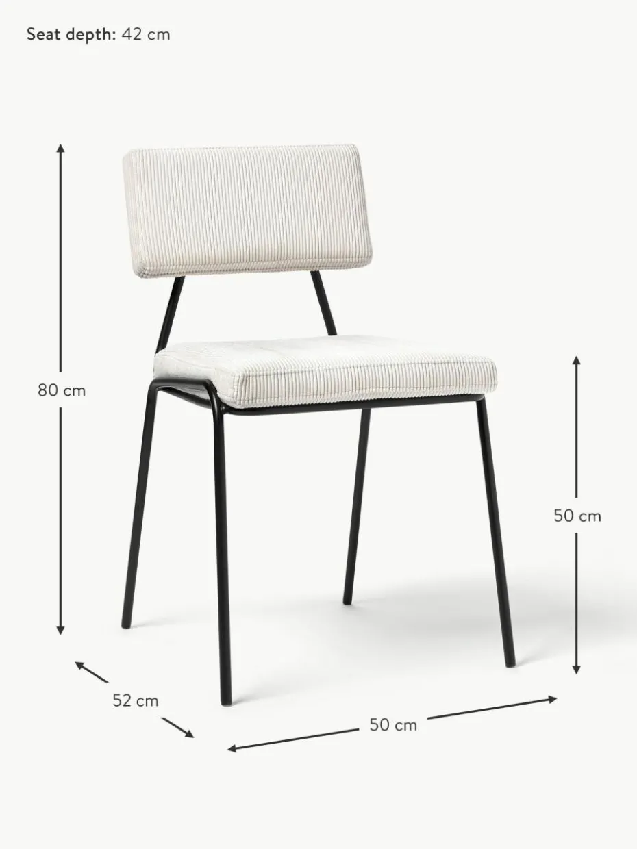 MATS bringt entspannten Style und Komfort in Dein Zuhause. Mit seinem weichen Cordbezug ist er nicht nur super gemütlich, sondern sieht auch richtig schick aus. Die filigranen Metallbeine verleihen dem Stuhl einen modernen, minimalistischen Look und sorgen gleichzeitig für Stabilität.