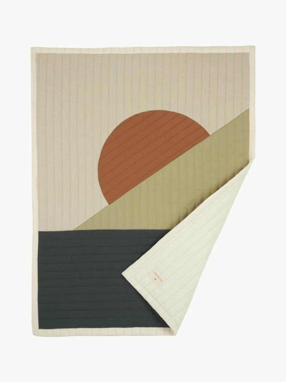 Weich und elegant gestaltet, verleiht die Decke mit Landschafts-Motiv dem Kinderzimmer eine grafische Note. Die Arty Quilts Kollektion von Nobodinoz umfasst eine Reihe von Plaids aus Bio-Baumwolle und französischem Leinen sowie einzigartige Kreationen, die von der sanften Poesie der Kindheit durchdrungen sind. Als Bettdecke, Spielteppich oder als Kunstwerk an der Wand aufgehängt, verleihen die bestickten Arty Quilts den Decken Tiefe und erhellen Dein Zuhause mit fröhlichen und zarten Kontrasten.