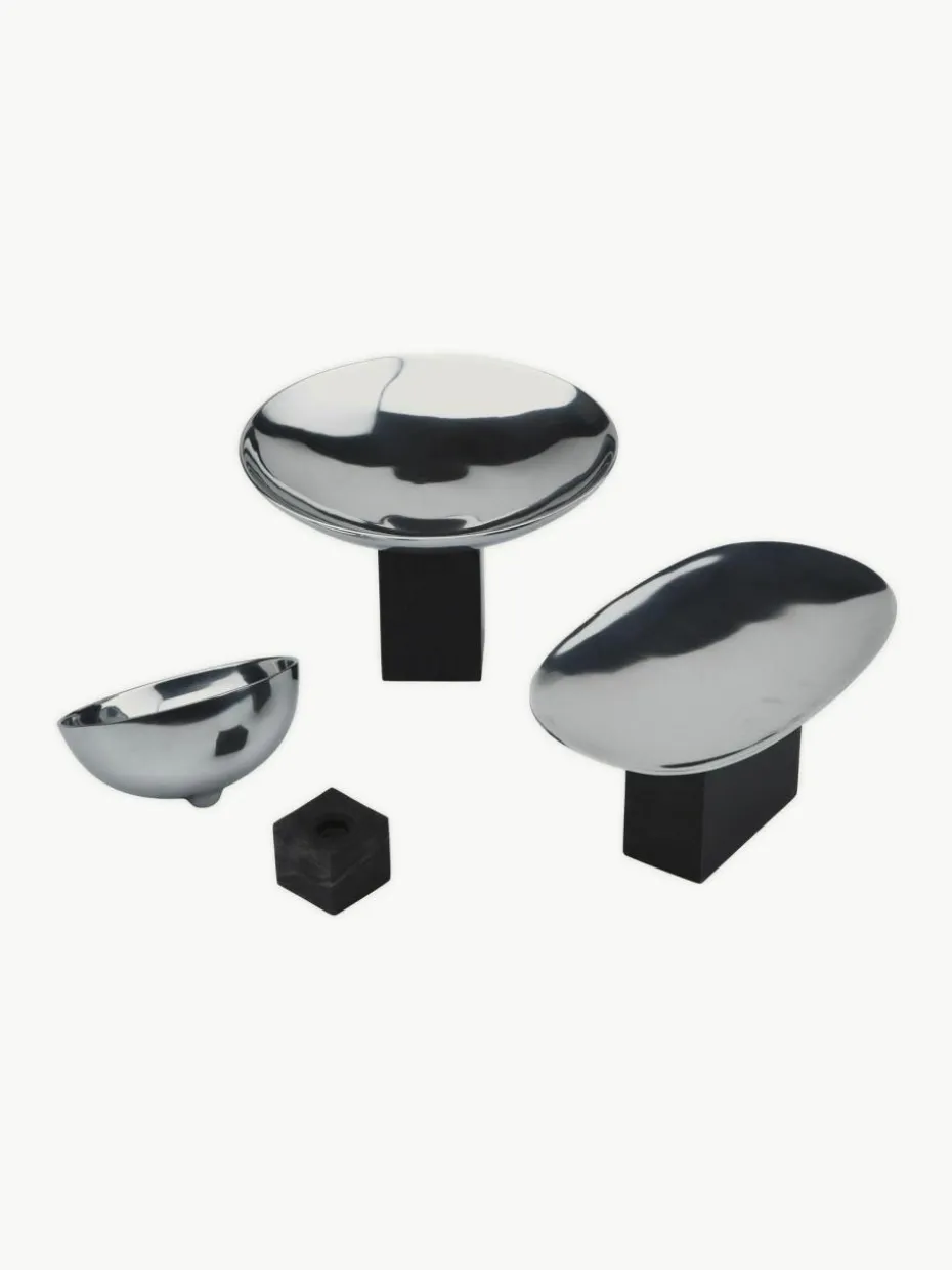 Sapoto ist ein japanisches Wort, das „mit Unterstützung“ bedeutet. Um diese Designidee zu unterstreichen, kombinierte Kasper Friis Egelund weiche, organische Formen aus poliertem Aluminium und rauem Marmor. Während das Serviertablett und die Schalen auf Hochglanz poliert sind, bildet der dunkle Marmor-Sockel einen schönen Kontrast. Das Design der einzelnen Schalen und des Tabletts ist sorgfältig durchgedacht. Das Design und die Strukturen schaffen eine schöne Dynamik zwischen den Objekten, aus denen die Serie besteht. Die Schalen können einzeln oder in einem Set verwendet werden. Der Esstisch erhält einen raffinierten Ausdruck, wenn man die verschiedenen Sapoto-Schalen kombiniert und mit Köstlichkeiten füllt. Auch auf der Fensterbank können die Schalen sich stilvoll präsentieren.“,“pdp_care_label“:“Marmor ist ein weicher Kalkstein und dadurch anfällig gegenüber Feuchtigkeit und Säure. Achte also bitte darauf, dass Flüssigkeiten sofort entfernt werden. Zur Reinigung und Pflege verwende bitte nur PH neutrale oder für Marmor empfohlene Mittel.