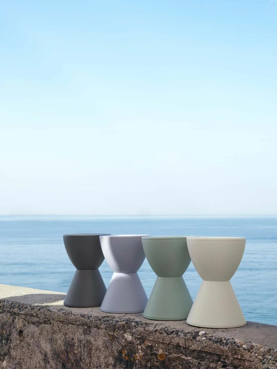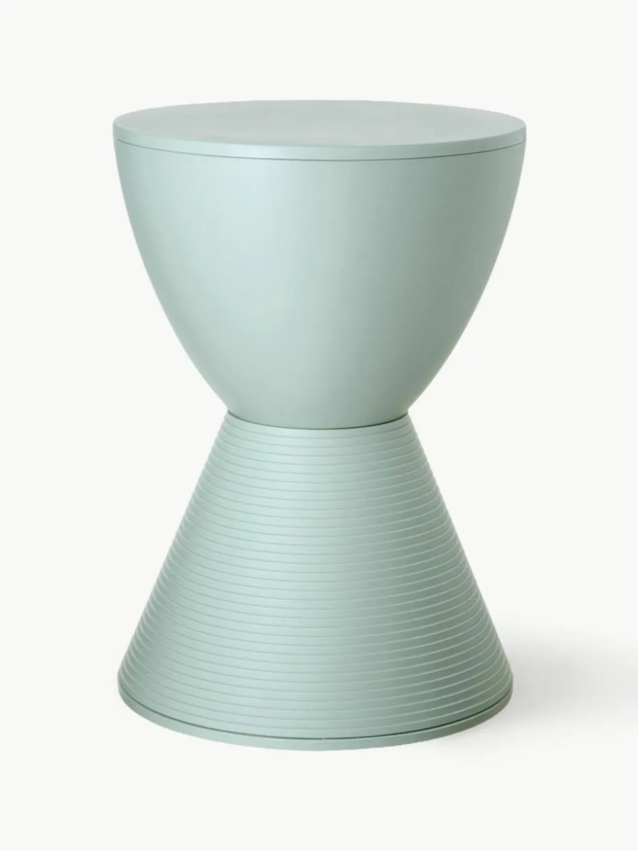 Prince Aha von Designer Philippe Starck besteht aus zwei Kegeln, die miteinander verbunden sind und zusammen die Form einer Sanduhr ergeben. Ein ebenso originelles wie praktisches Accessoire, das sich hervorragend als Beistelltisch neben dem Sofa oder Nachttisch neben dem Bett macht.