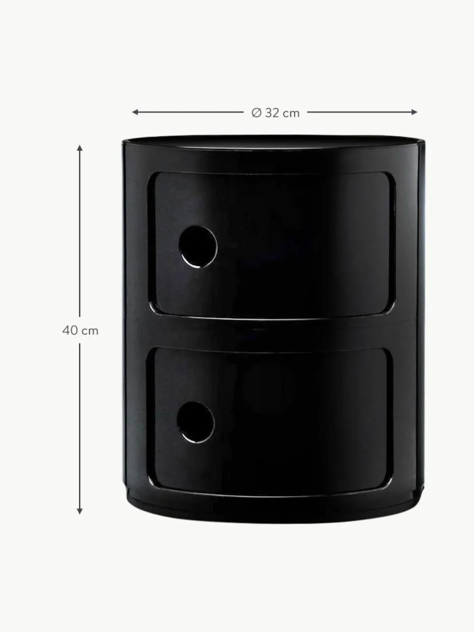 Die COMPONIBILI, entworfen von Anna Castelli Ferrieri im Jahr 1967, gelten als ikonisches Designstück. Mit ihren flexiblen Modulen aus zwei, drei oder vier Elementen passen sie sich mühelos jedem Raum an und bieten vielseitige Einsatzmöglichkeiten. Ihr minimalistisches Design fügt sich nahtlos in verschiedenste Einrichtungsstile ein, ohne dabei an Funktionalität zu verlieren.