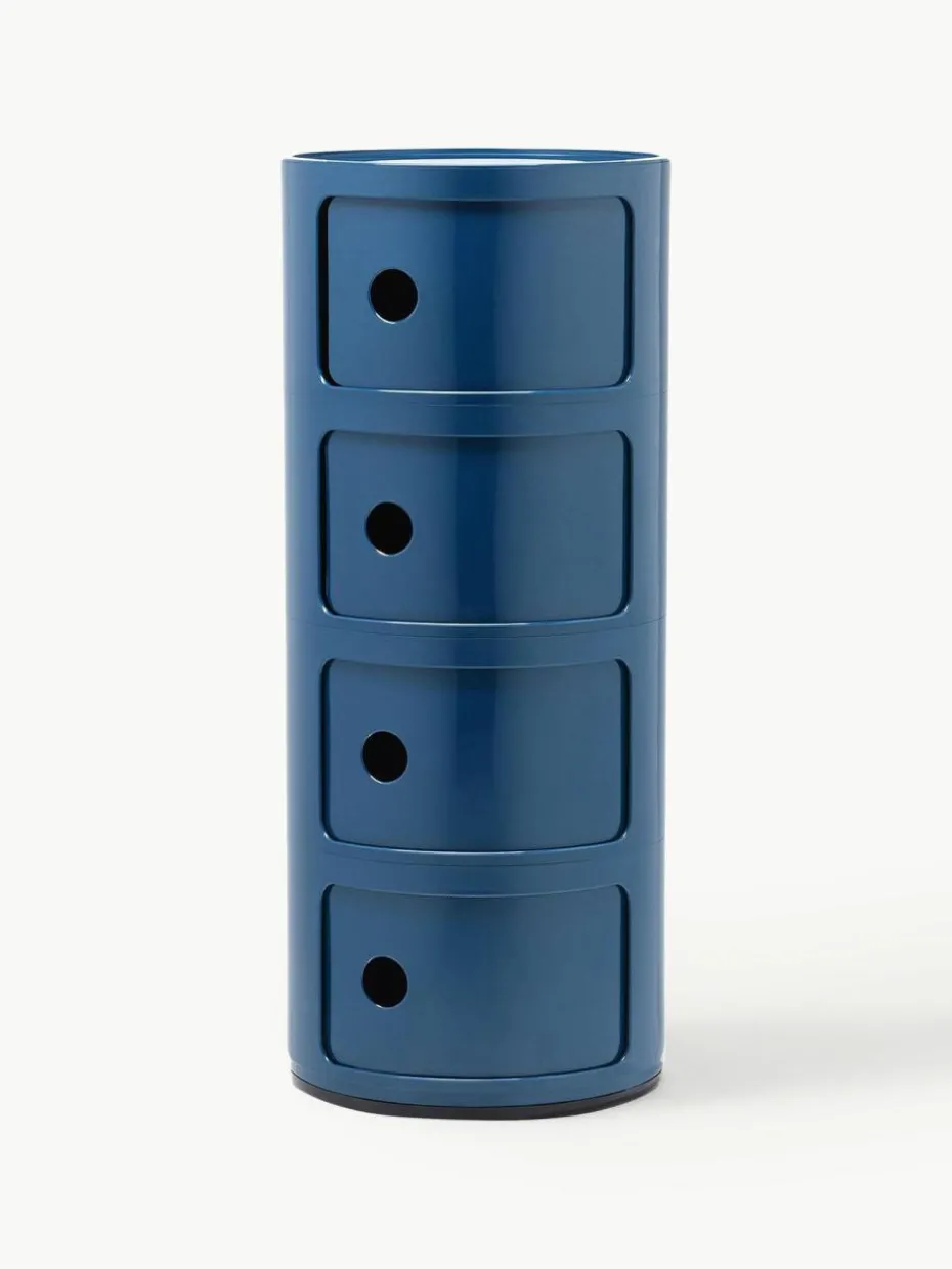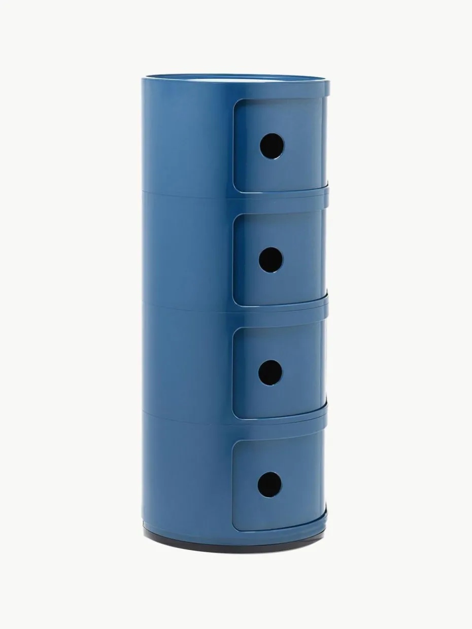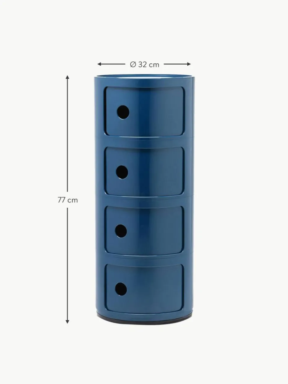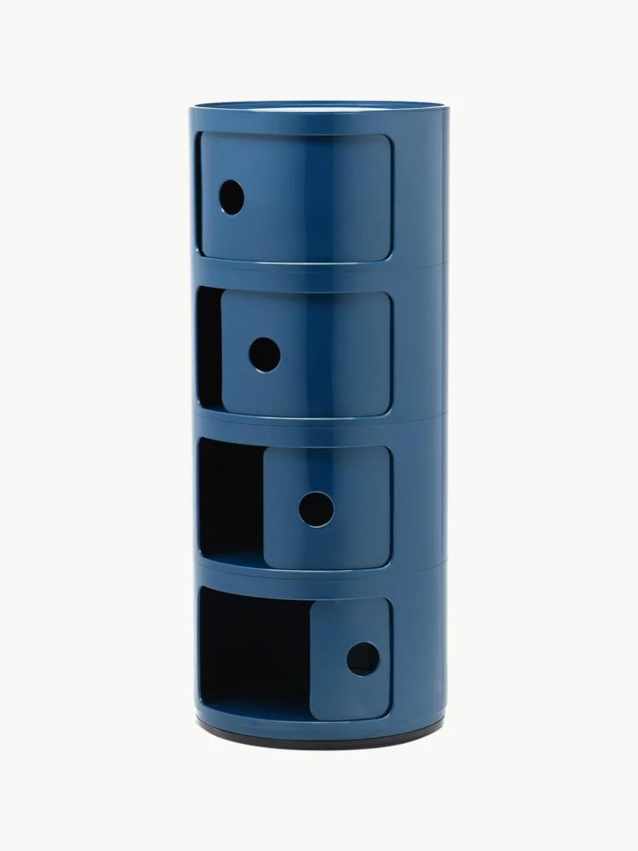 Die COMPONIBILI, entworfen von Anna Castelli Ferrieri im Jahr 1967, gelten als ikonisches Designstück. Mit ihren flexiblen Modulen aus zwei, drei oder vier Elementen passen sie sich mühelos jedem Raum an und bieten vielseitige Einsatzmöglichkeiten. Ihr minimalistisches Design fügt sich nahtlos in verschiedenste Einrichtungsstile ein, ohne dabei an Funktionalität zu verlieren.
