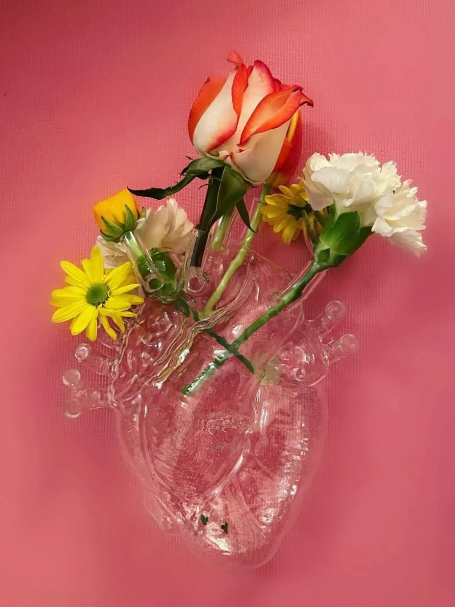LOVE IN BLOOM ist eine herzförmige Vase, die aussieht, als käme sie aus einem Aufsatz über menschliche Anatomie. Eine moderne Liebe, übersetzt in ein romantisches, aber unvorhersehbares Geschenk. Es ist kein Traum, es ist die blühende Liebe. Es ist nicht der Frühling, es ist die blühende Liebe.