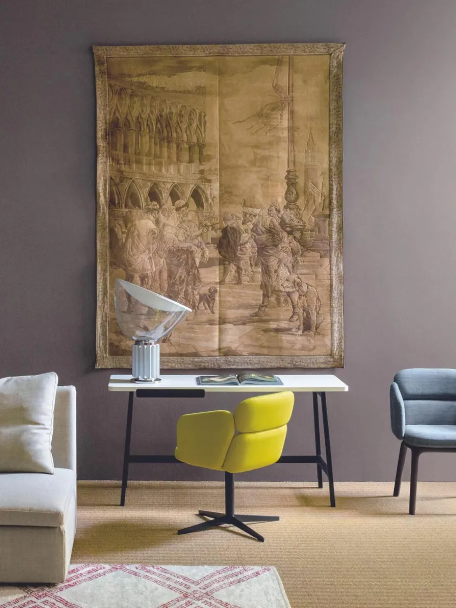 TACCIA, entworfen von den Designern Achille und Pier Giacomo Castiglioni, ist ebenso modern wie stilvoll. Hergestellt aus transparentem PMMA und Chrom, versprüht TACCIA einen Hauch von Industrie und verbreitet indirektes, reflektiertes Licht.