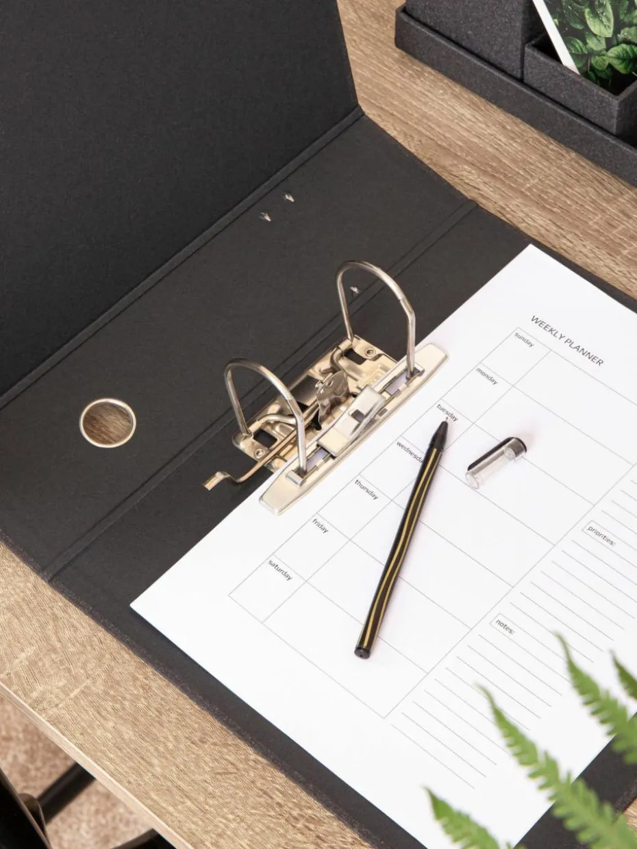 Der Dokumentenordner ist mit einem Zwei-Ring-Metallmechanismus ausgestattet und eignet sich optimal für Standarddokumente im DIN A4 Format.